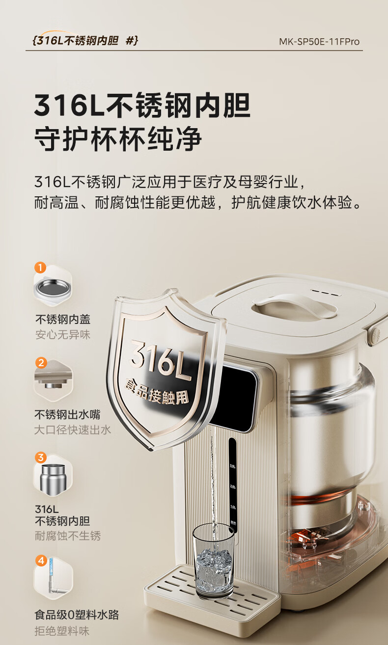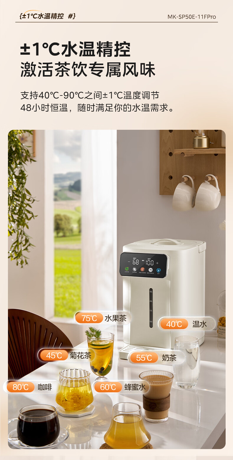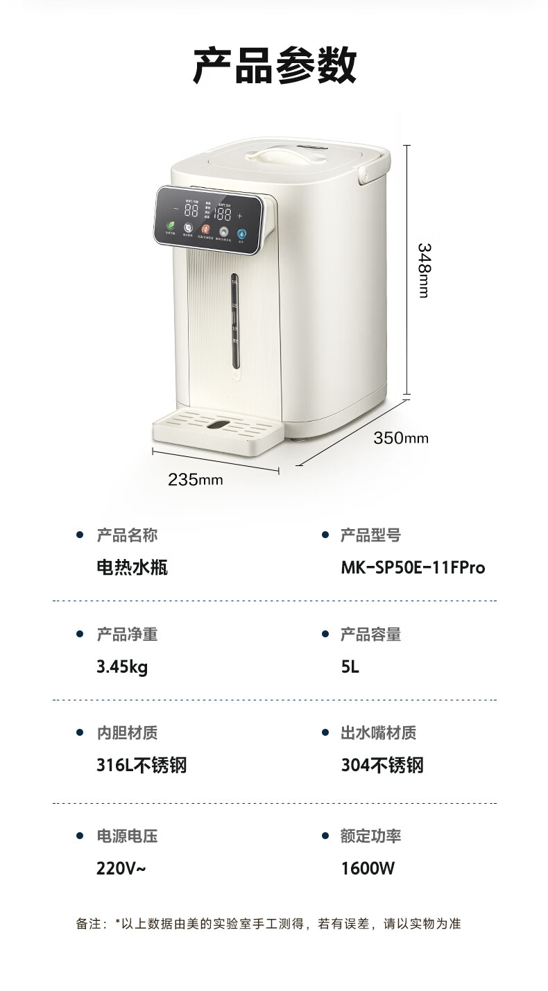美的(Midea)电热水瓶烧水壶食品级316L不锈钢家用5L大容量全自动断电智能保温恒温一体可拆母婴冲奶神器11FPro