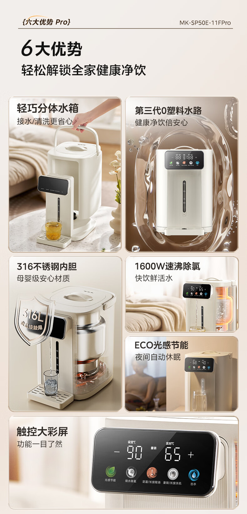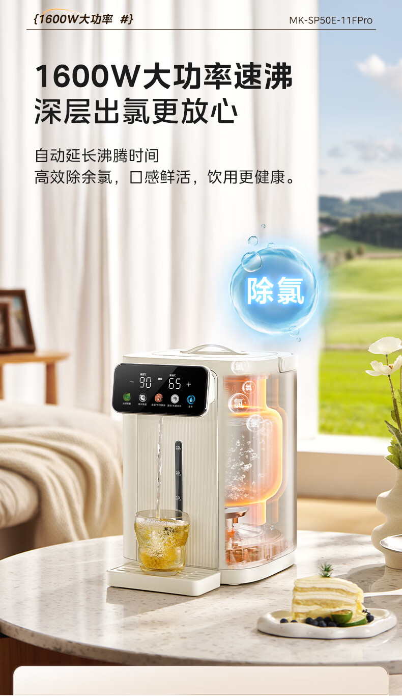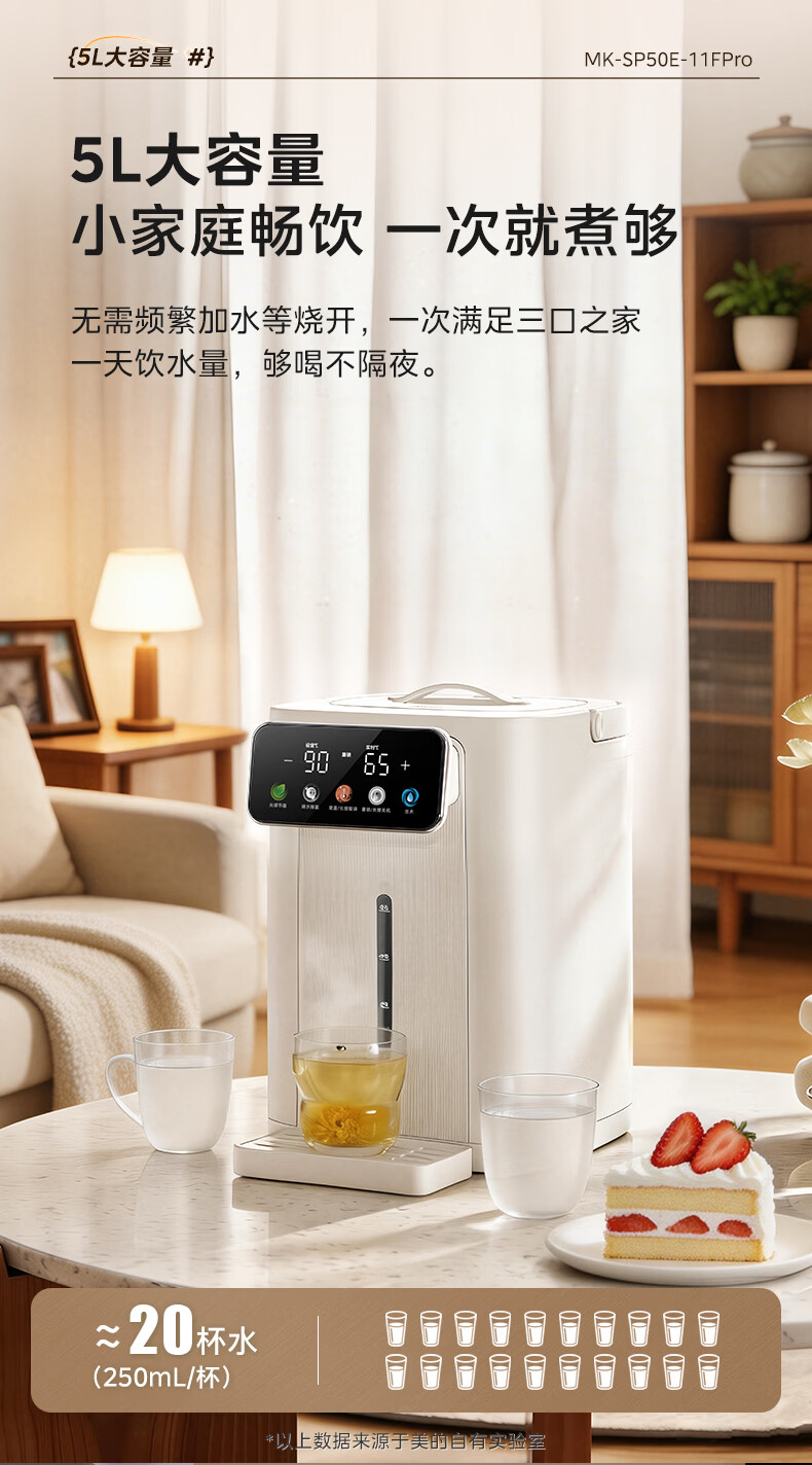 美的(Midea)电热水瓶烧水壶食品级316L不锈钢家用5L大容量全自动断电智能保温恒温一体可拆母婴冲奶神器11FPro