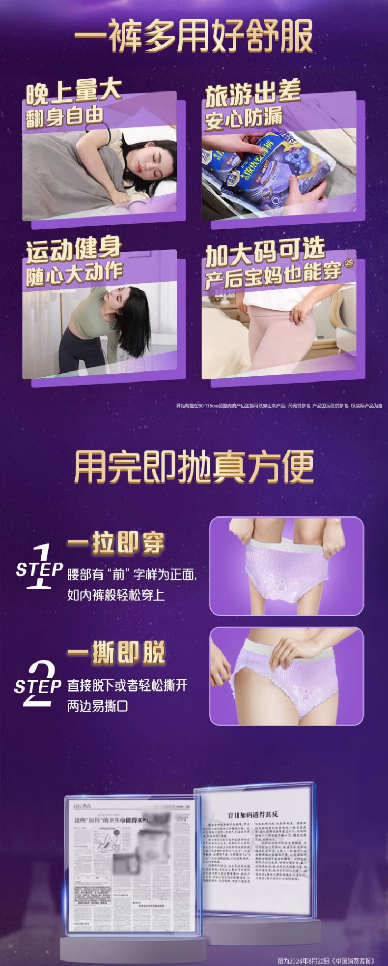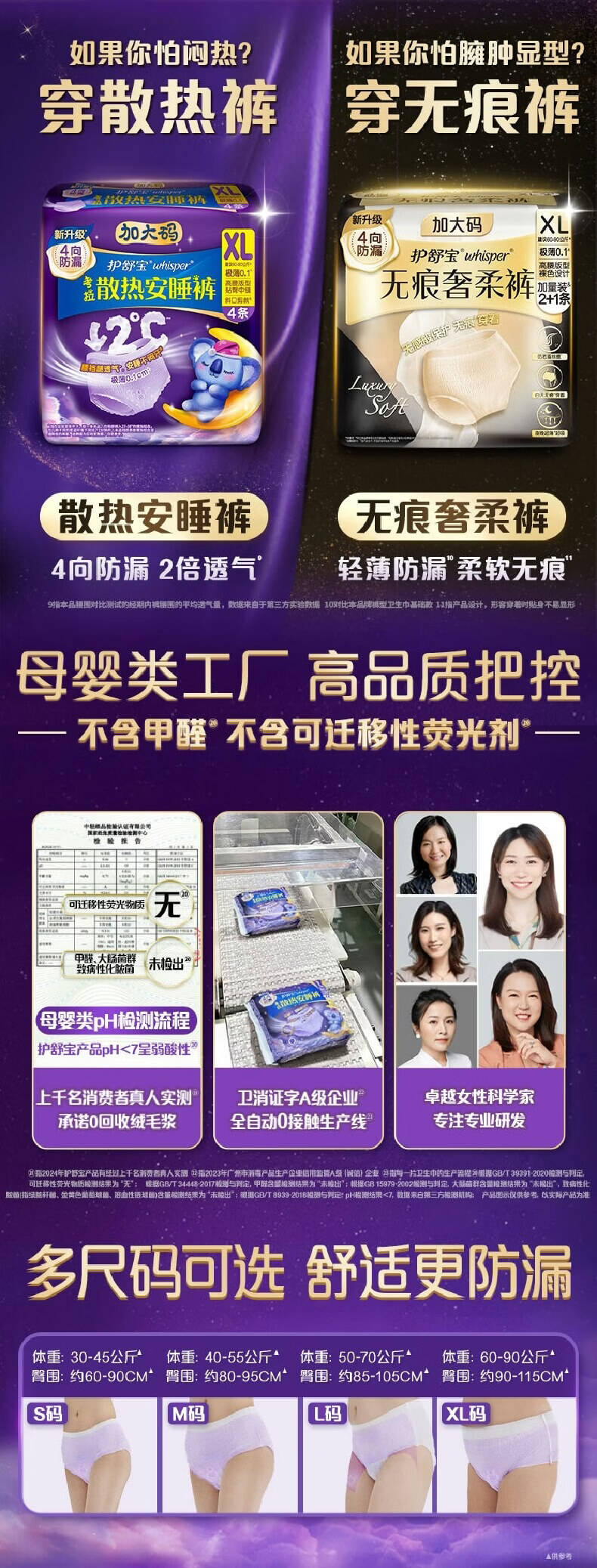 护舒宝考拉散热安睡裤XL加大码16条裤型卫生巾姨妈巾自营密封产后适用