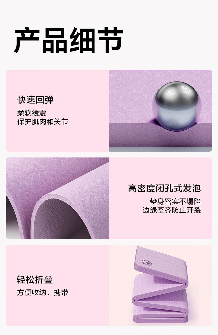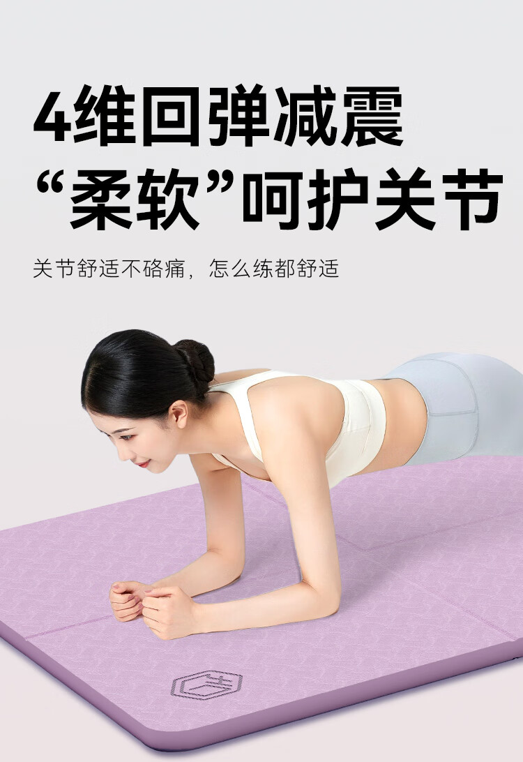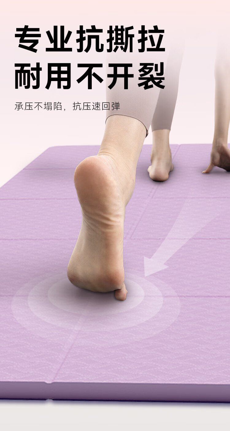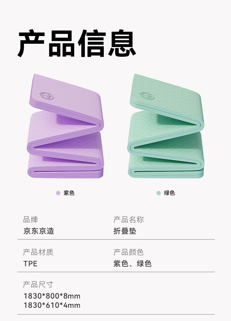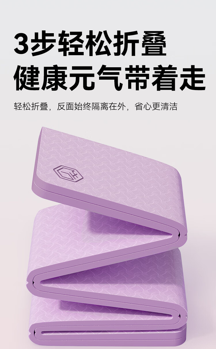 京造 TPE可折叠瑜伽垫 小学生午睡垫便携多功能户外运动垫加厚8mm紫