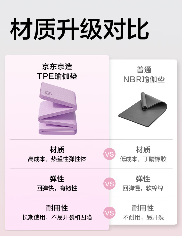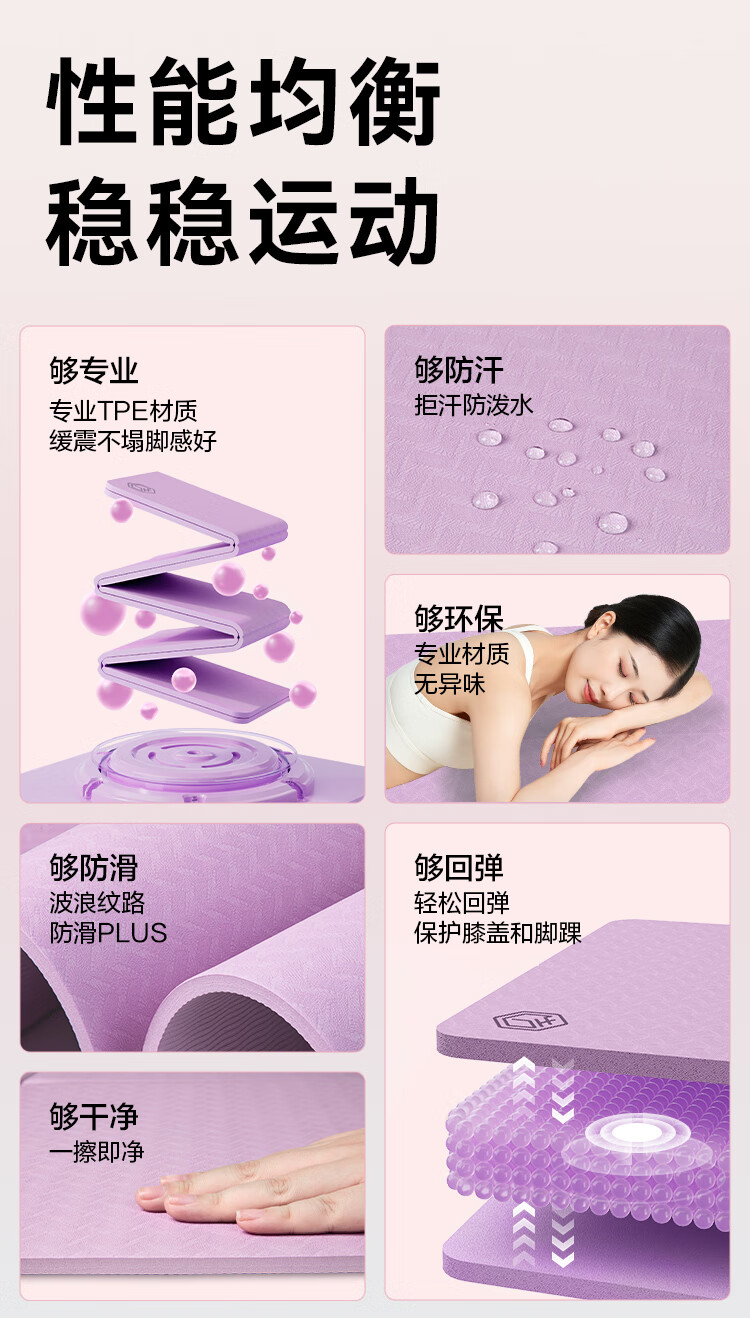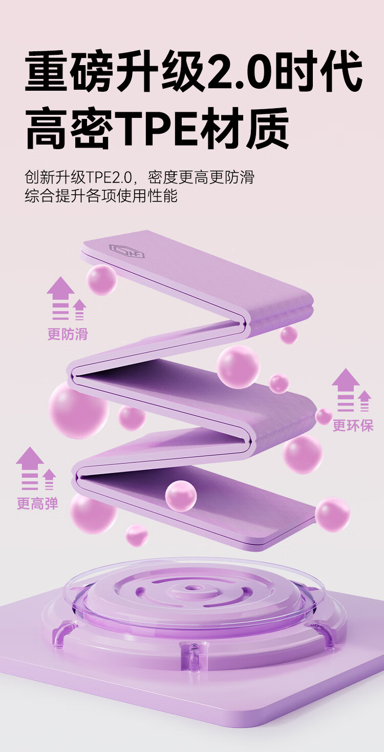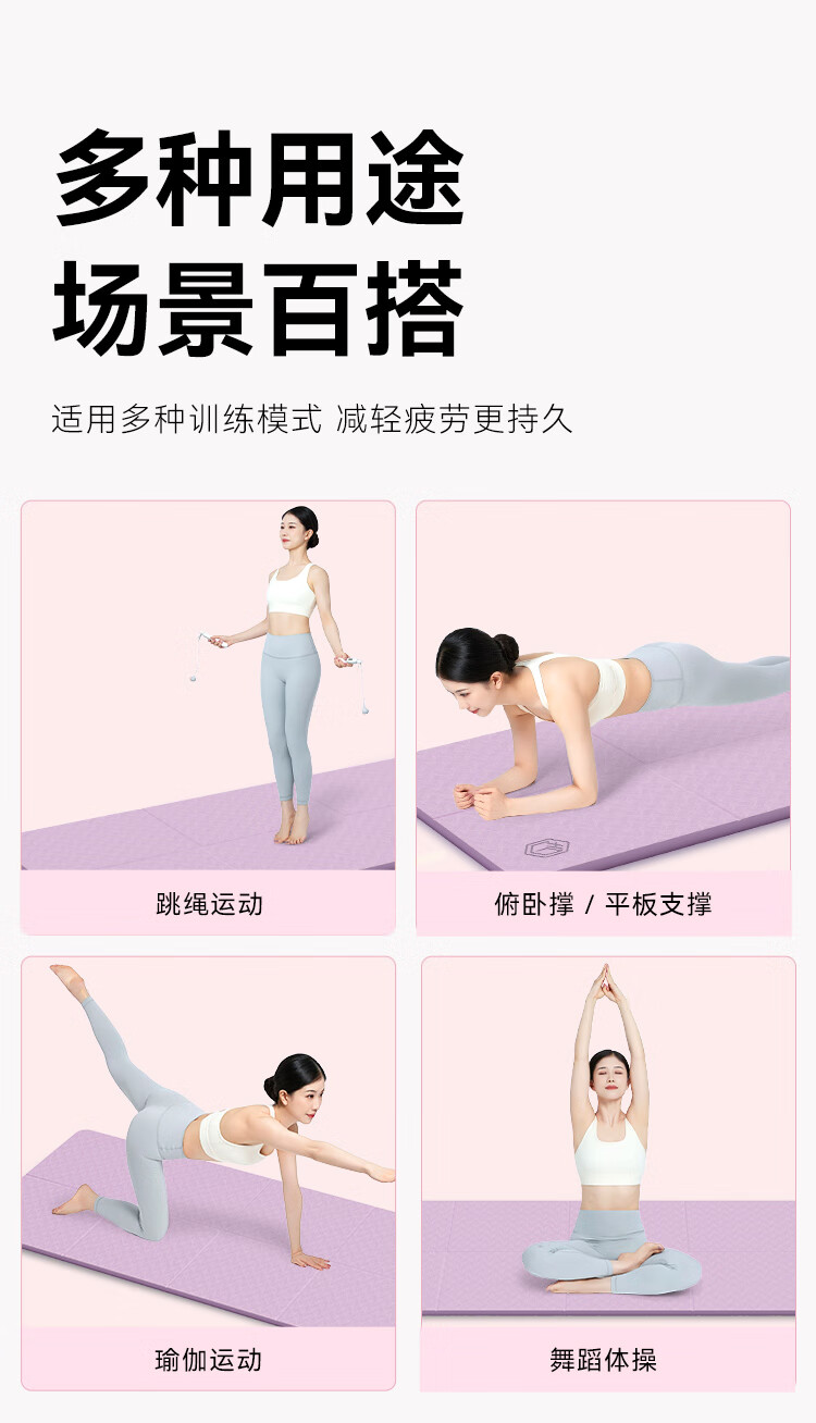 京造 TPE可折叠瑜伽垫 小学生午睡垫便携多功能户外运动垫加厚8mm紫