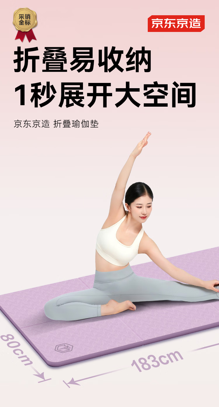 京造 TPE可折叠瑜伽垫 小学生午睡垫便携多功能户外运动