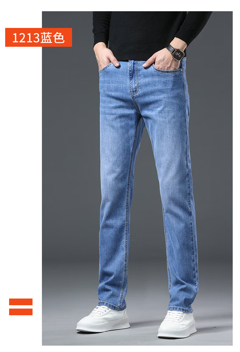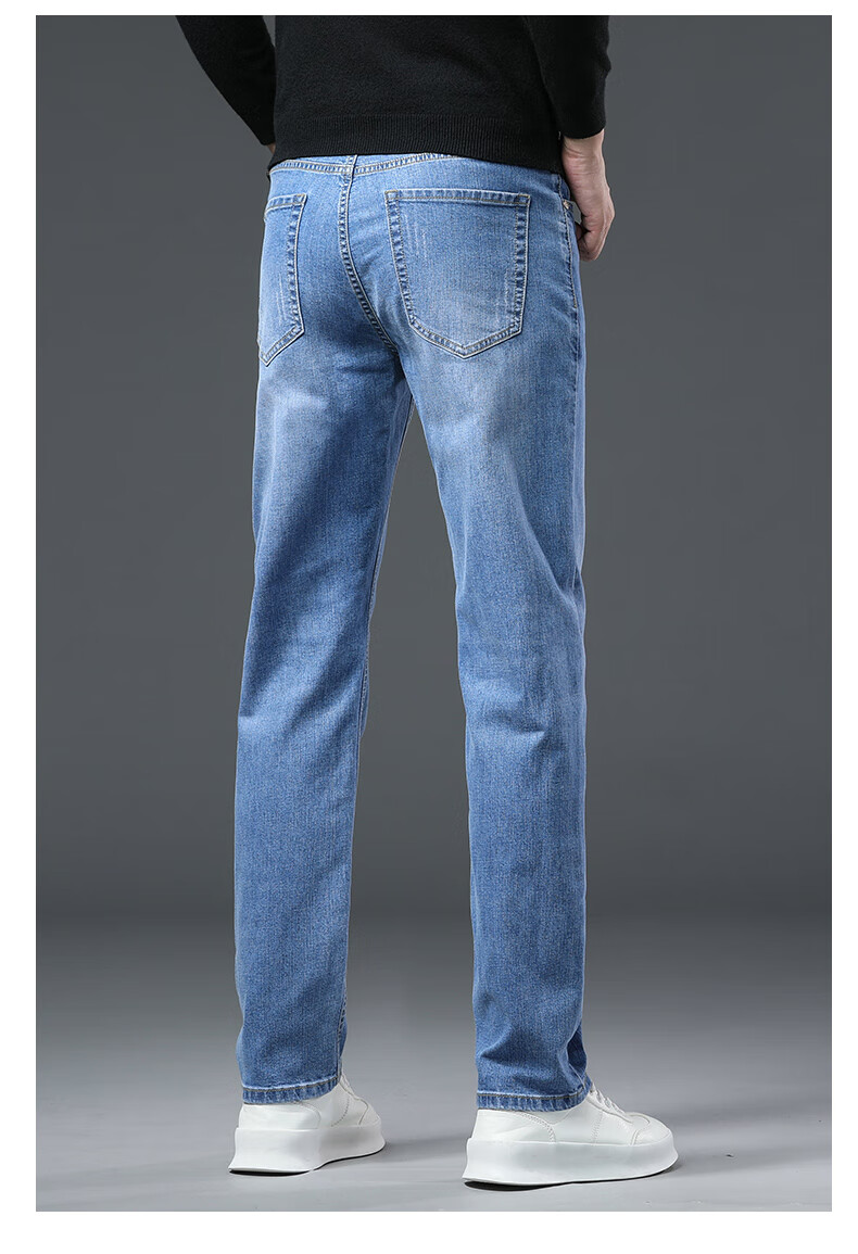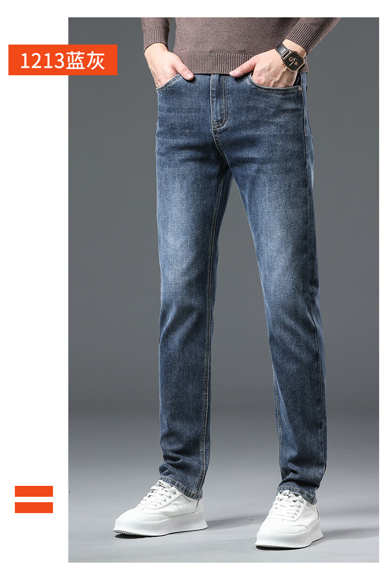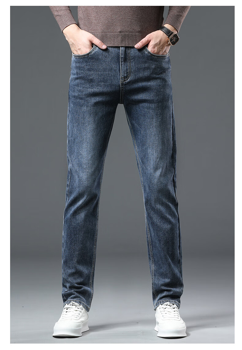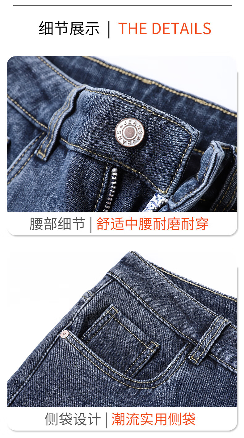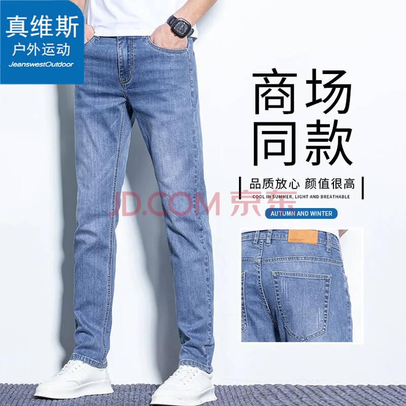 真维斯户外运动牛仔裤男士春秋季修身透气直筒裤休闲户外长裤 蓝色 33