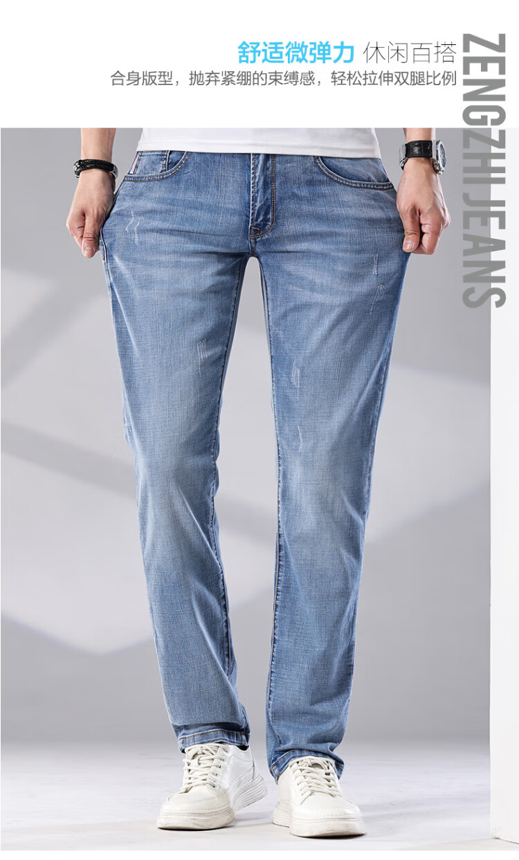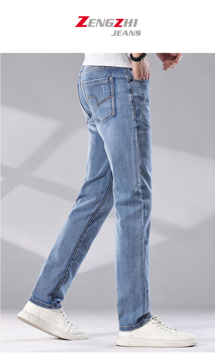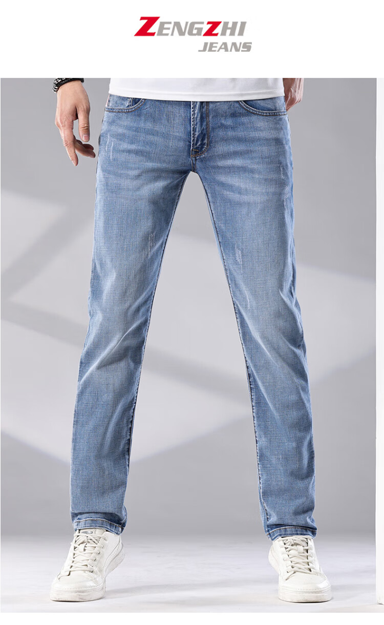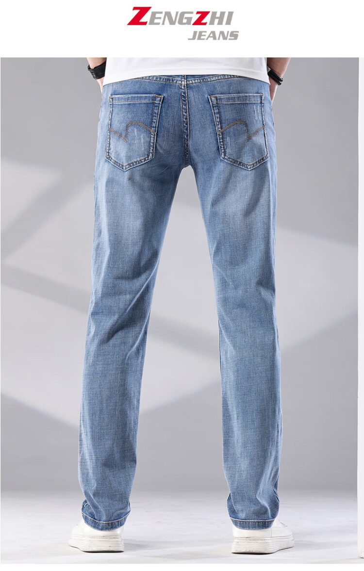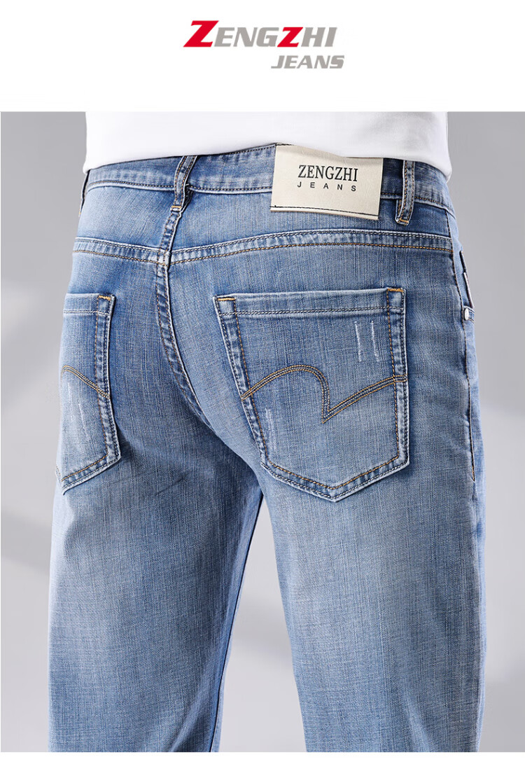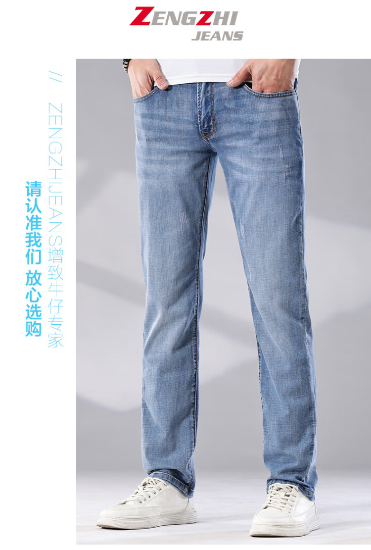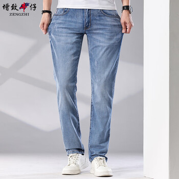 增致牛仔(zengzhi)男装牛仔裤 宽松直筒柔软舒适中腰长裤 浅蓝 33码