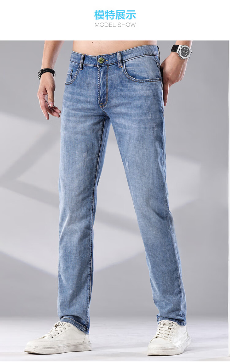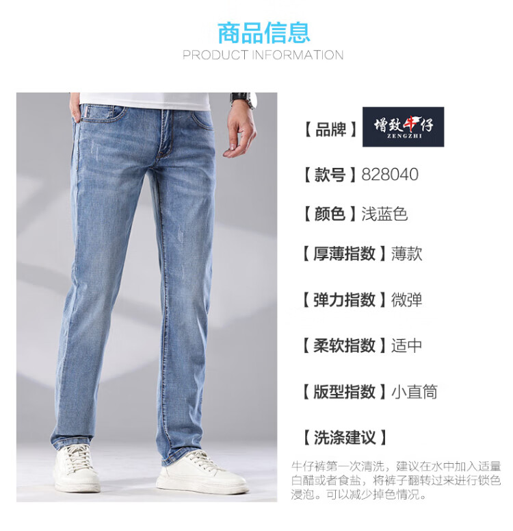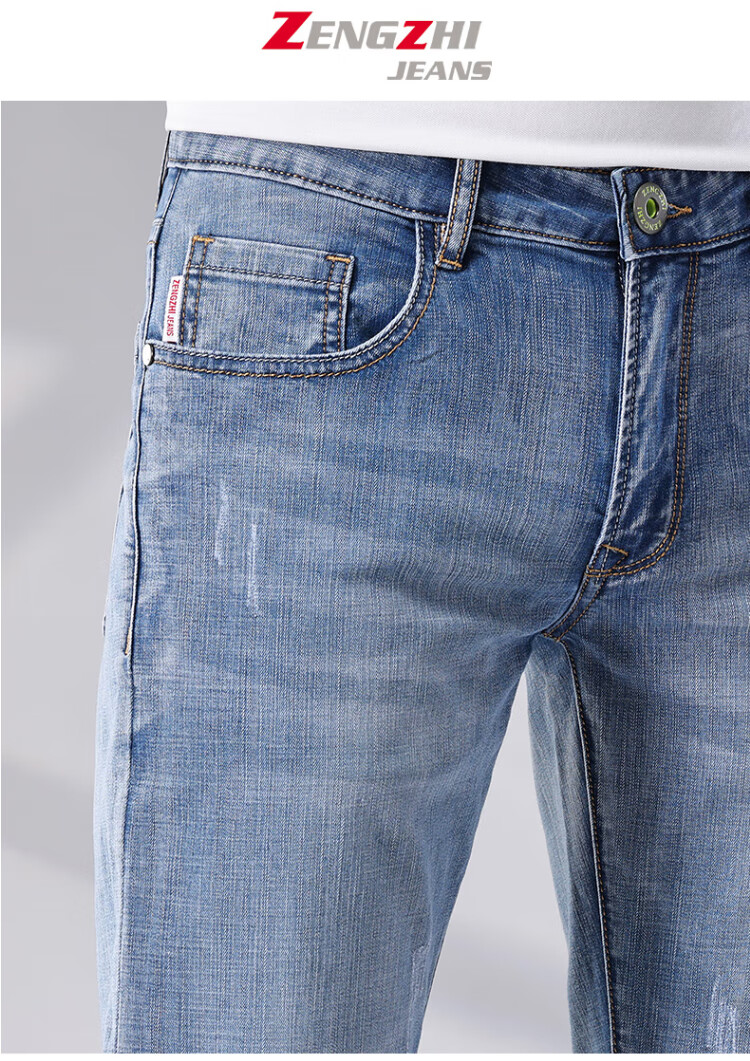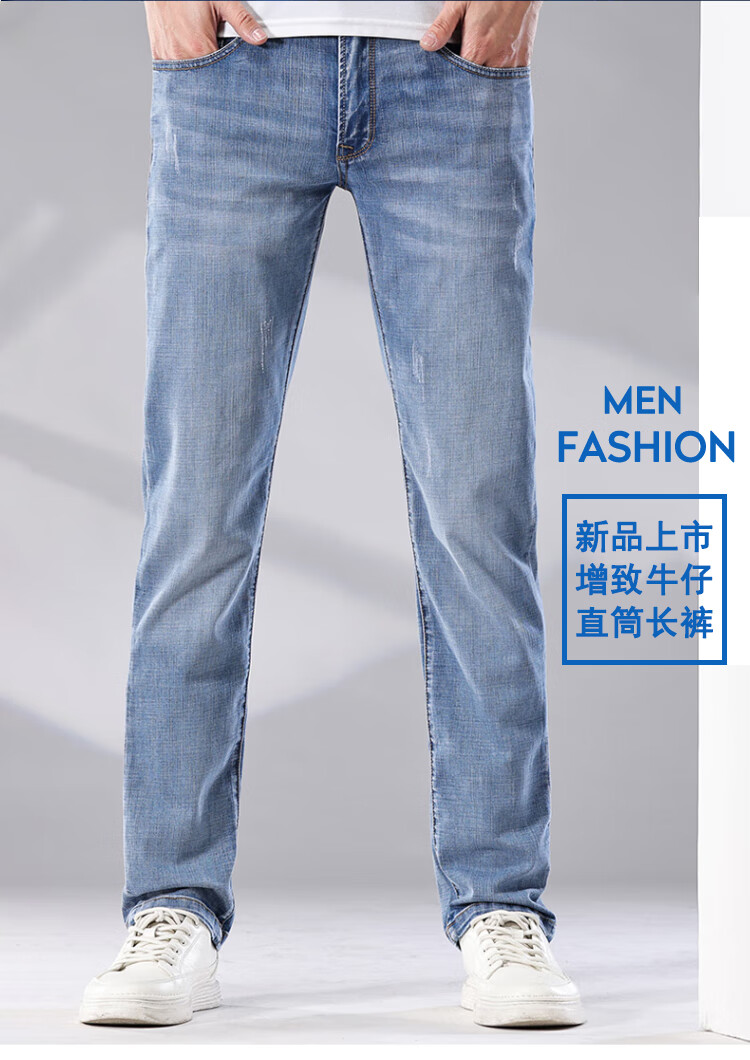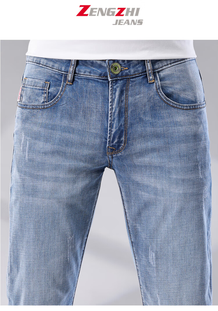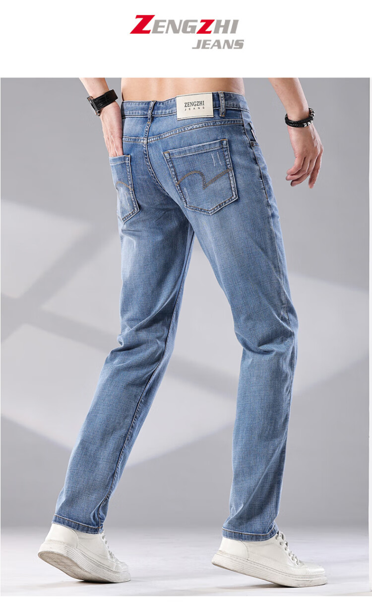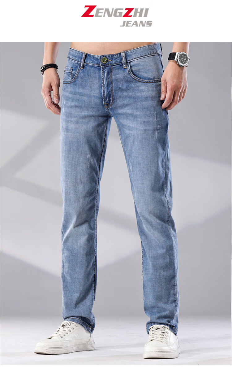 增致牛仔(zengzhi)男装牛仔裤 宽松直筒柔软舒适中腰长裤 浅蓝 33码