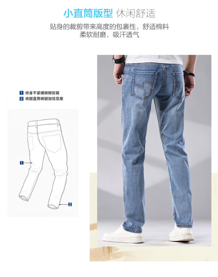 真维斯户外运动牛仔裤男士春秋季修身透气直筒裤休闲户外