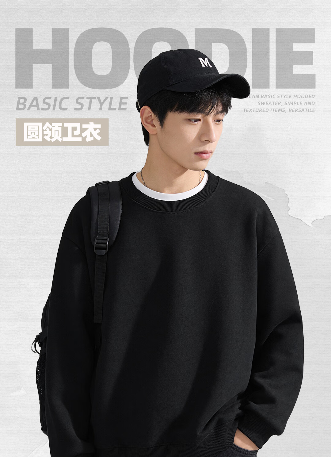 JEANSWEST LIFE真维斯无界圆领卫衣男款少年春季美式上衣男宽松休闲百搭男士外套