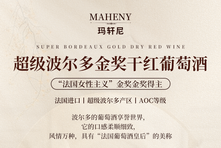 玛轩尼MAHENY法国进口红酒超级波尔多AOC干红葡萄酒 750ml*6整箱 15.5度
