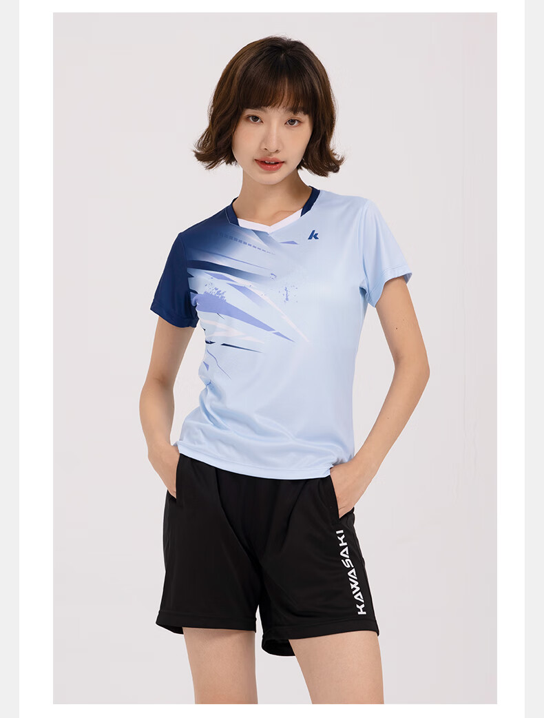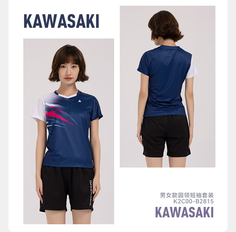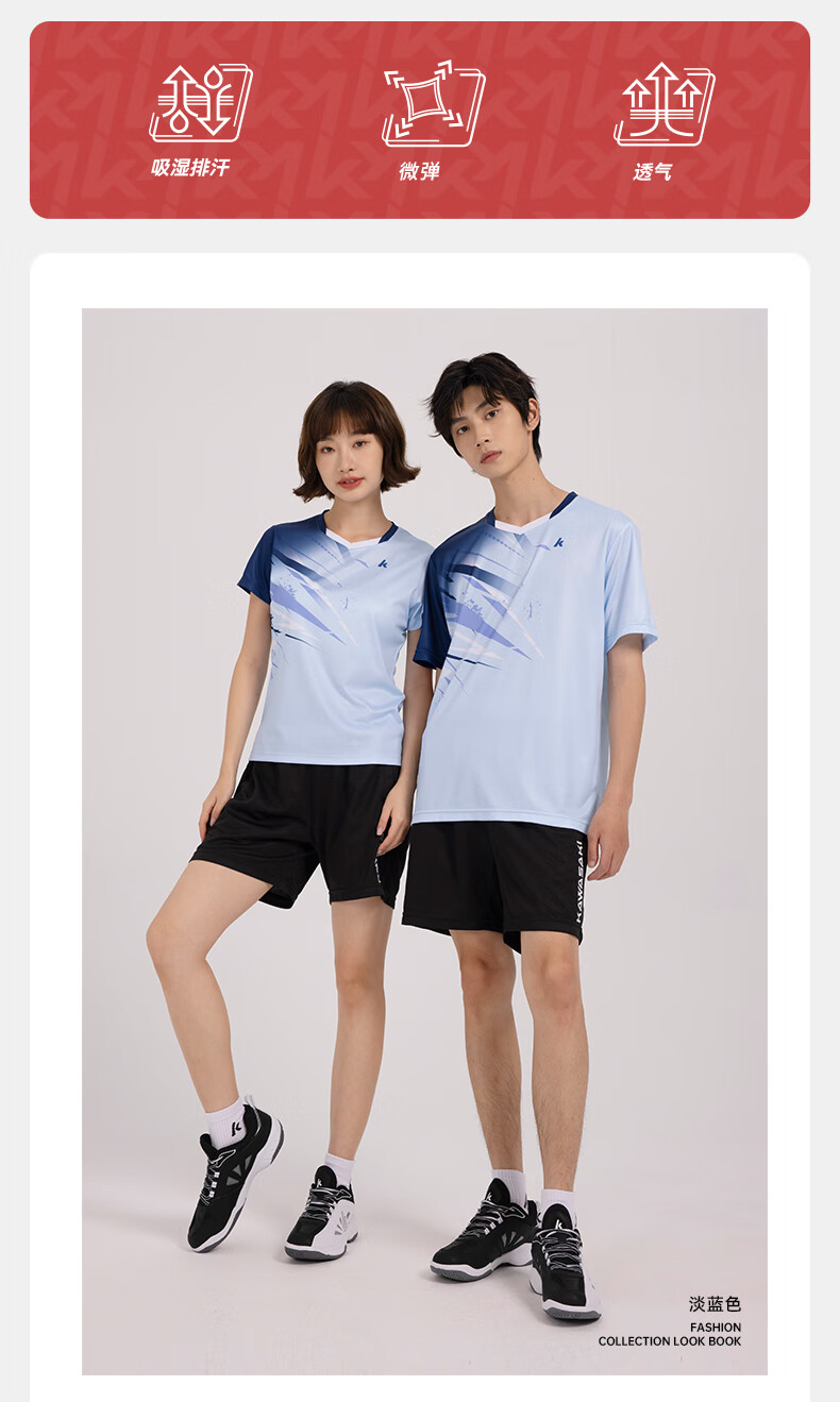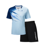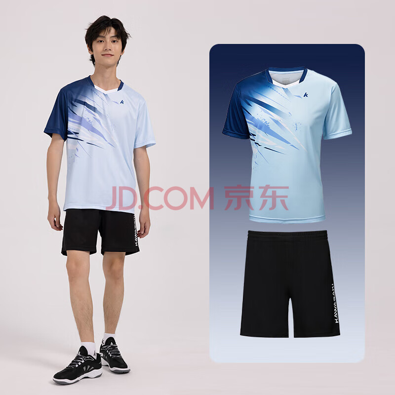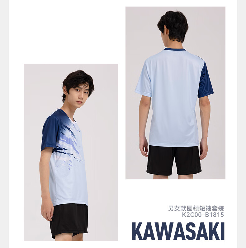 川崎(KAWASAKI)羽毛球服男款专业运动圆领短袖+短裤套装B1815 淡蓝色 2XL