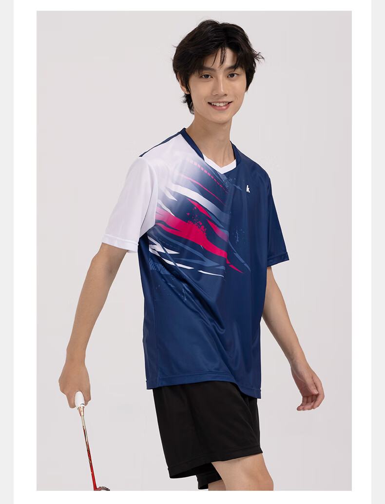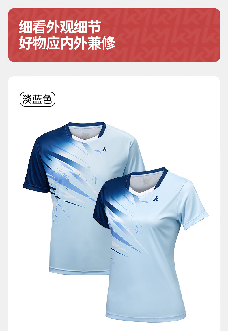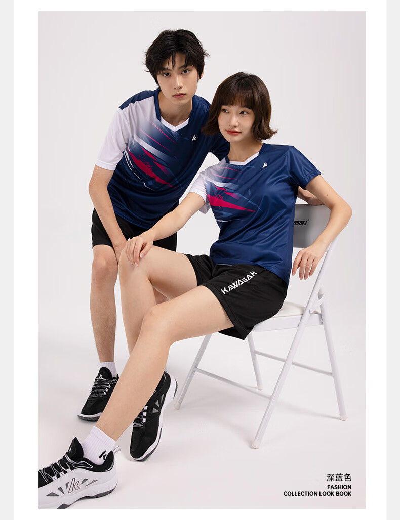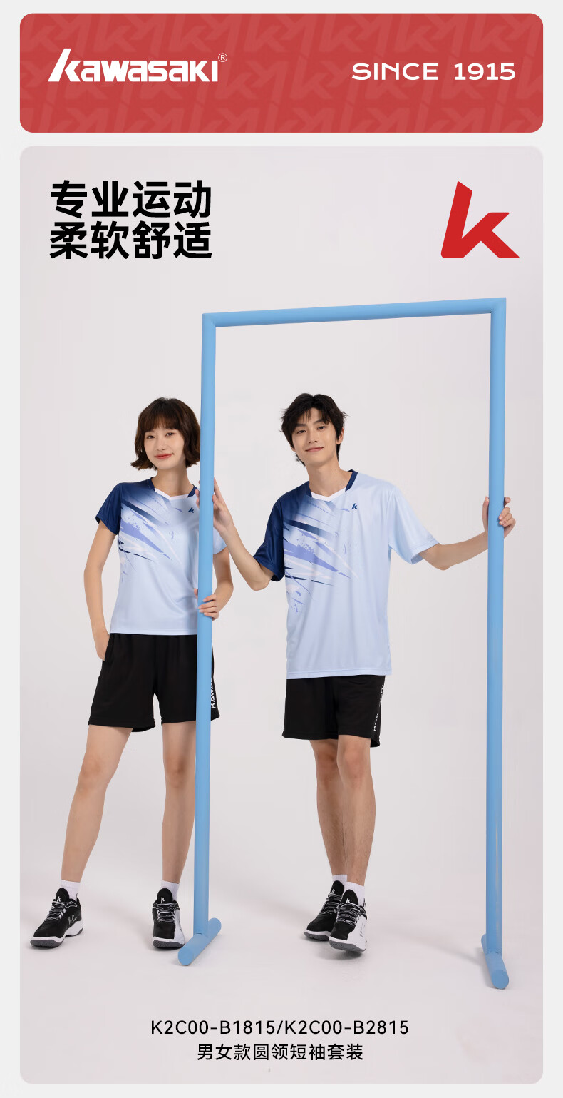 川崎(KAWASAKI)羽毛球服男款专业运动圆领短袖+短裤套装B1815 淡蓝色 2XL