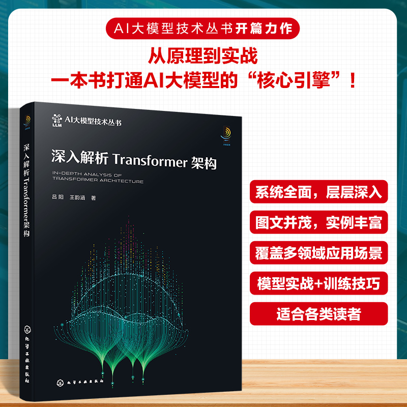 《深入解析 Transformer 架构》致力于系统地解析 Transformer 模型的核心原理和应用前景。作为“AI 大模型技术丛书”的开篇之作,本书从 Transformer 的起源讲起,分析了模型设计背后的挑战及创新点,包括注意力机制、位置编码、多头注意力等核心技术。书中深入探讨了 Transformer 在自然语言处理和计算机视觉等领域的实际应用,展示了其在复杂任务中的显著优势和扩展潜力。通过清晰的理论解析与丰富的应用案例,本书为理解和使用 Transformer 模型的学习者提供了全面的指南,适合对 Transformer 模型感兴趣的各类读者学习使用。