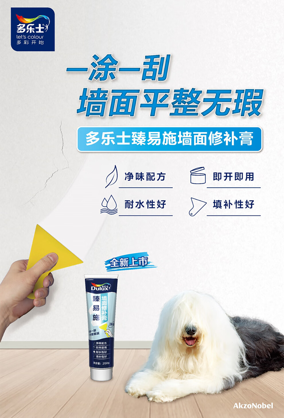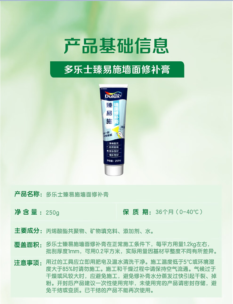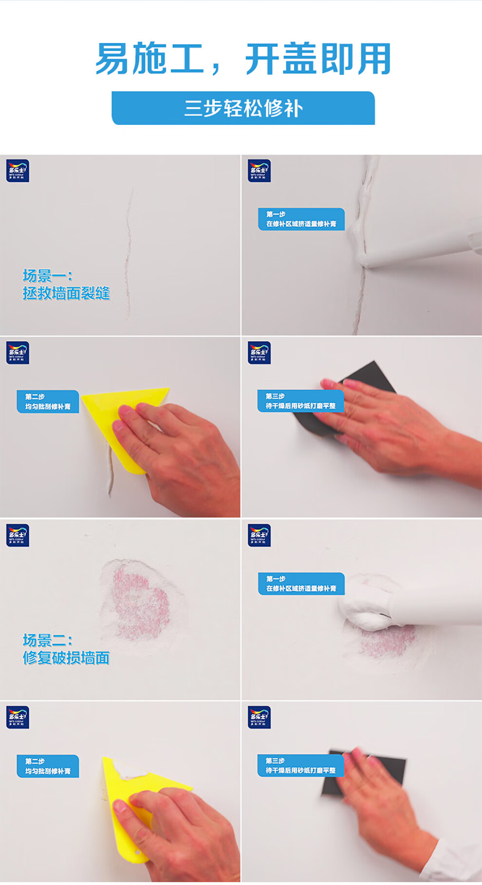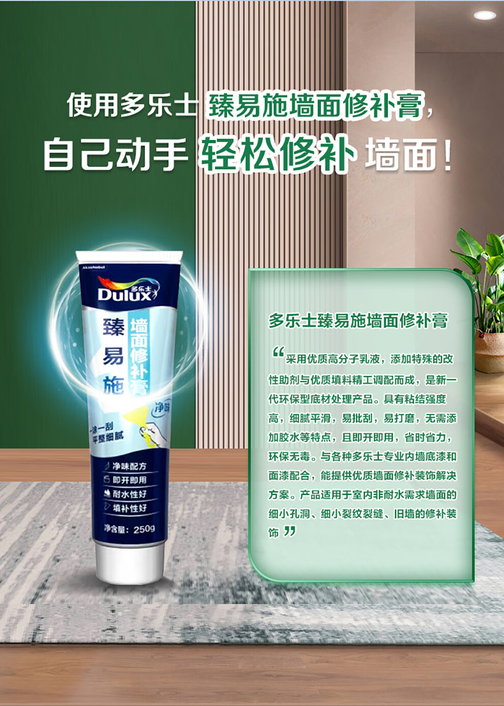 多乐士(Dulux)臻易施补墙膏净味白墙去污乳胶漆墙面修复腻子膏翻新漆墙漆修补膏 250g*1支
