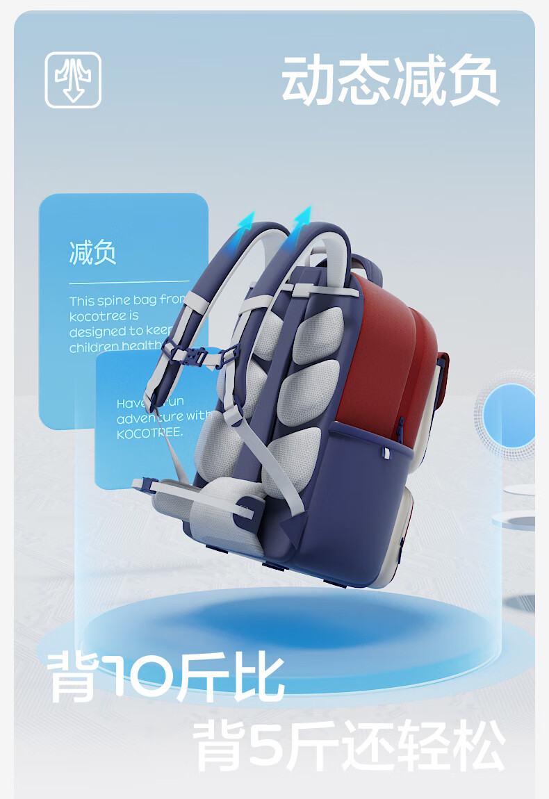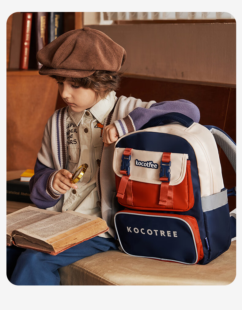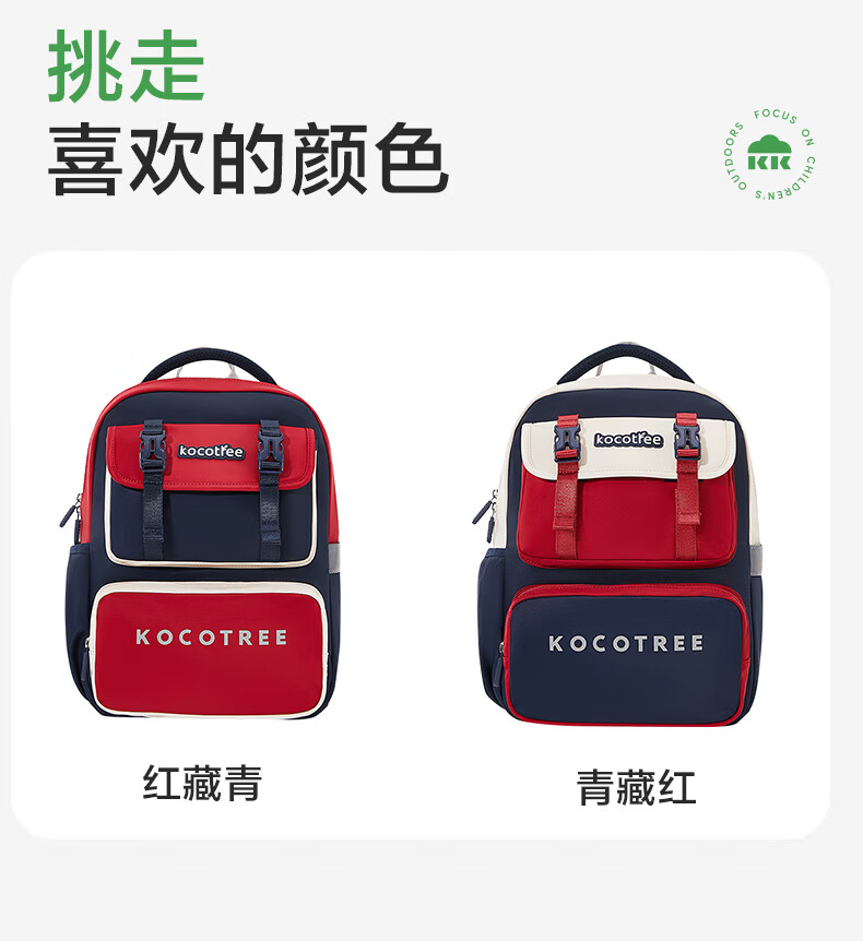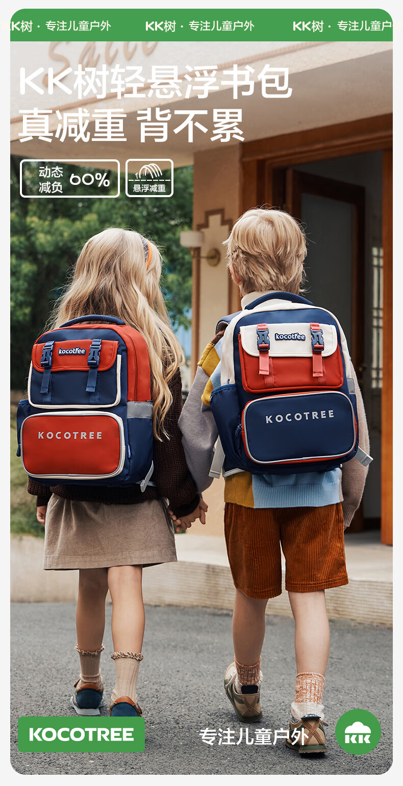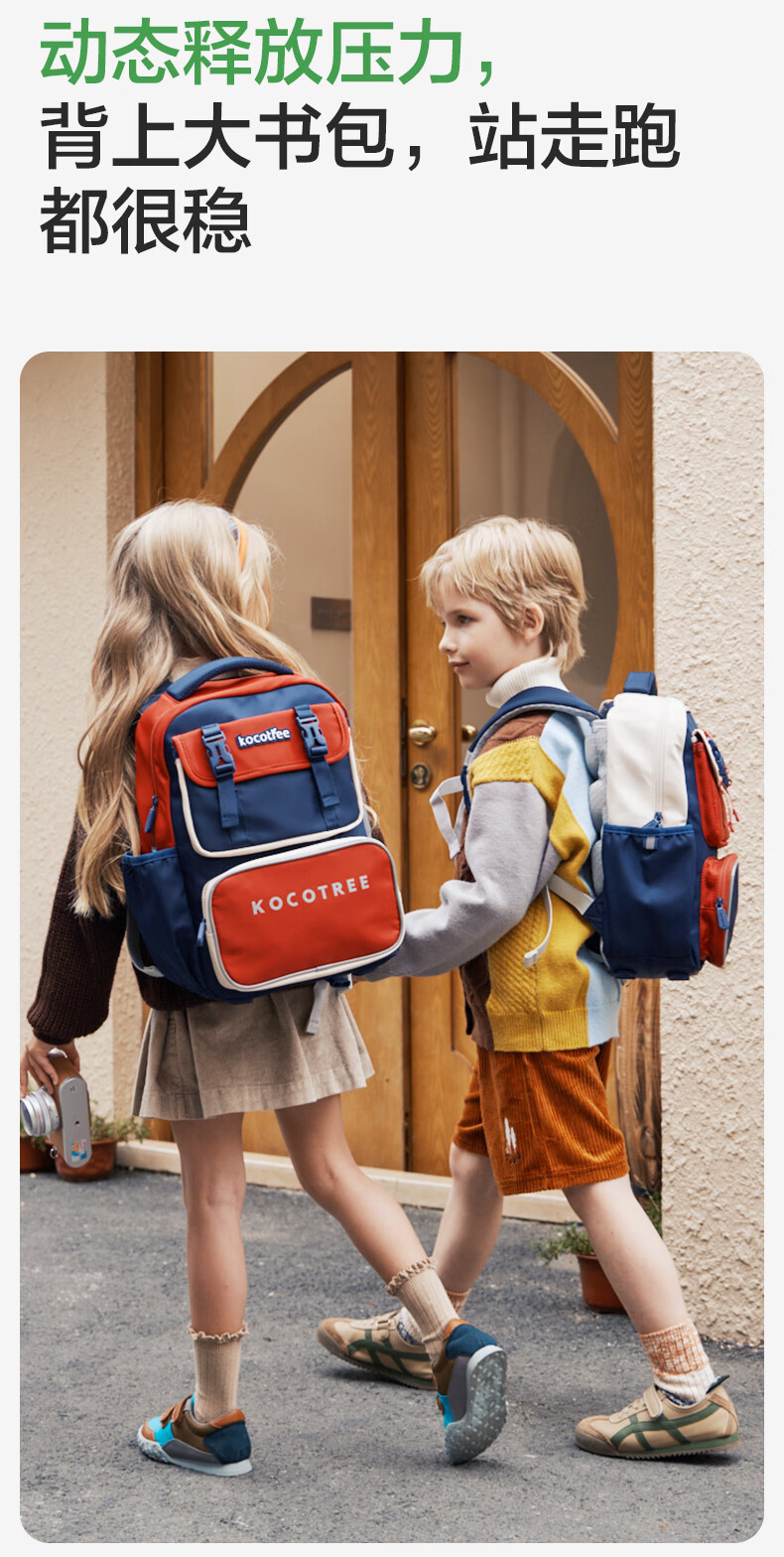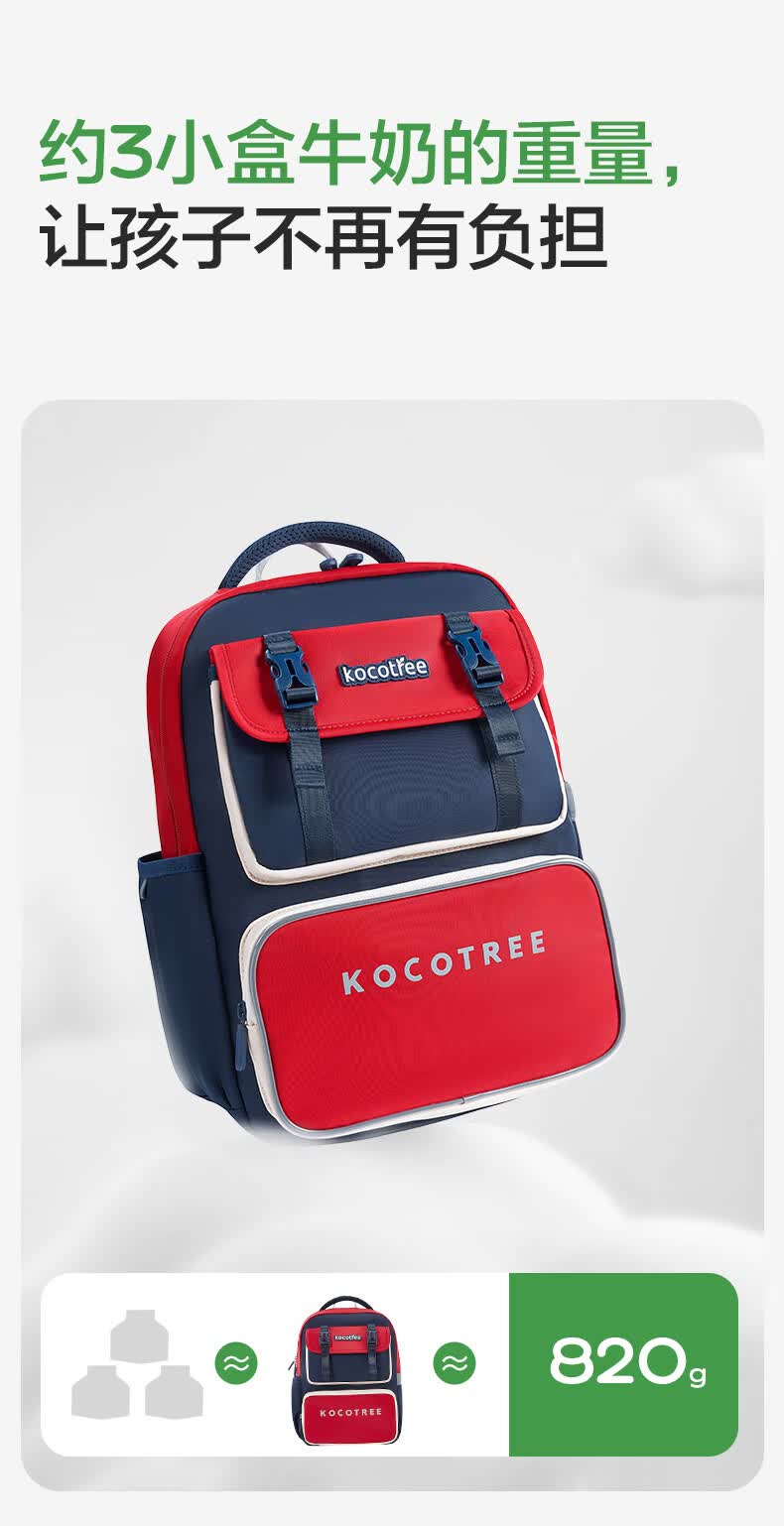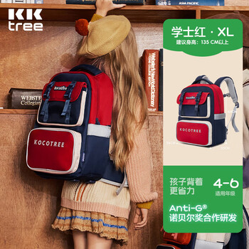 Kocotreekk树书包小学生减负超轻男孩女生4-6年级背包大容量儿童书包红XL