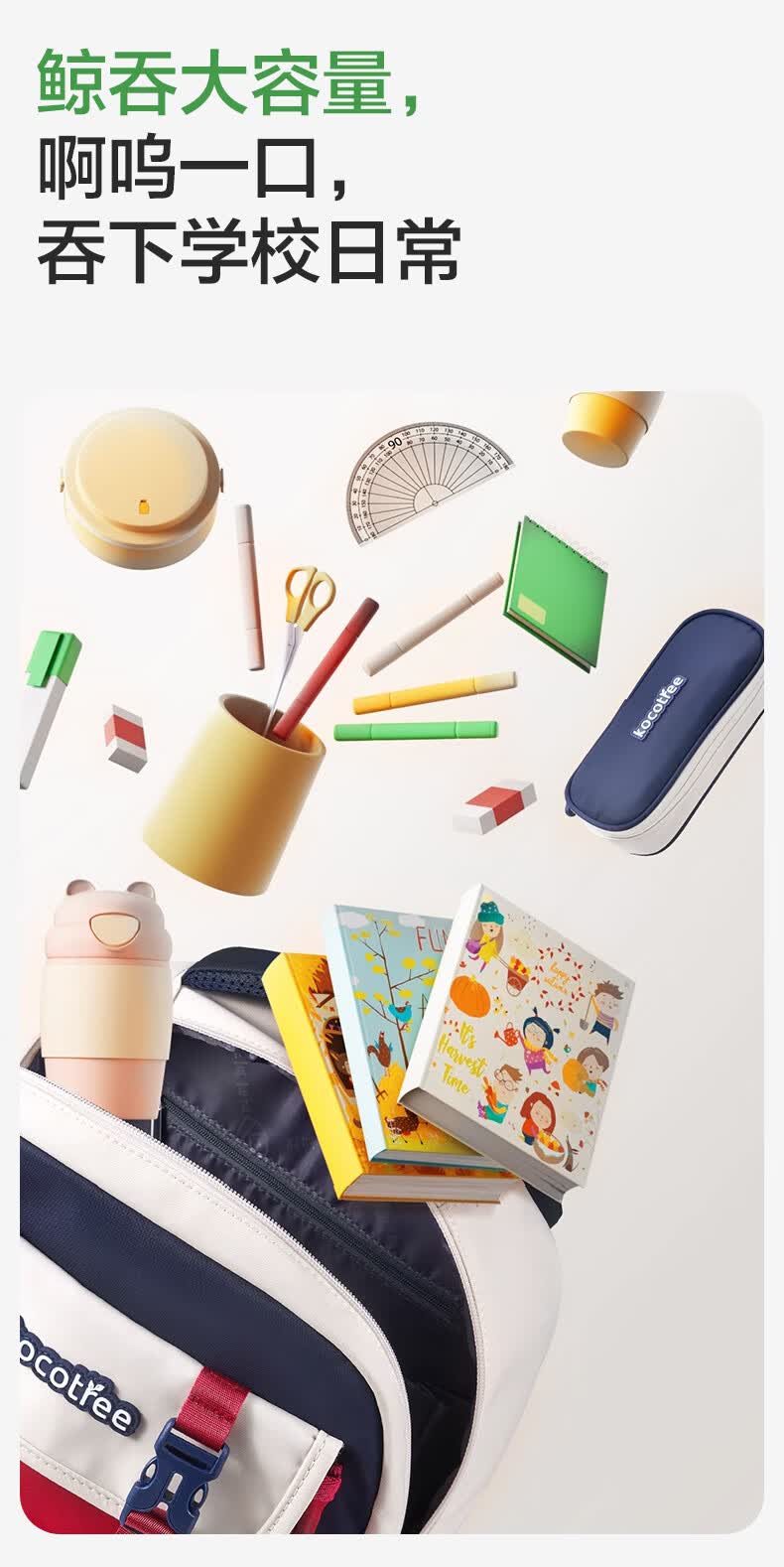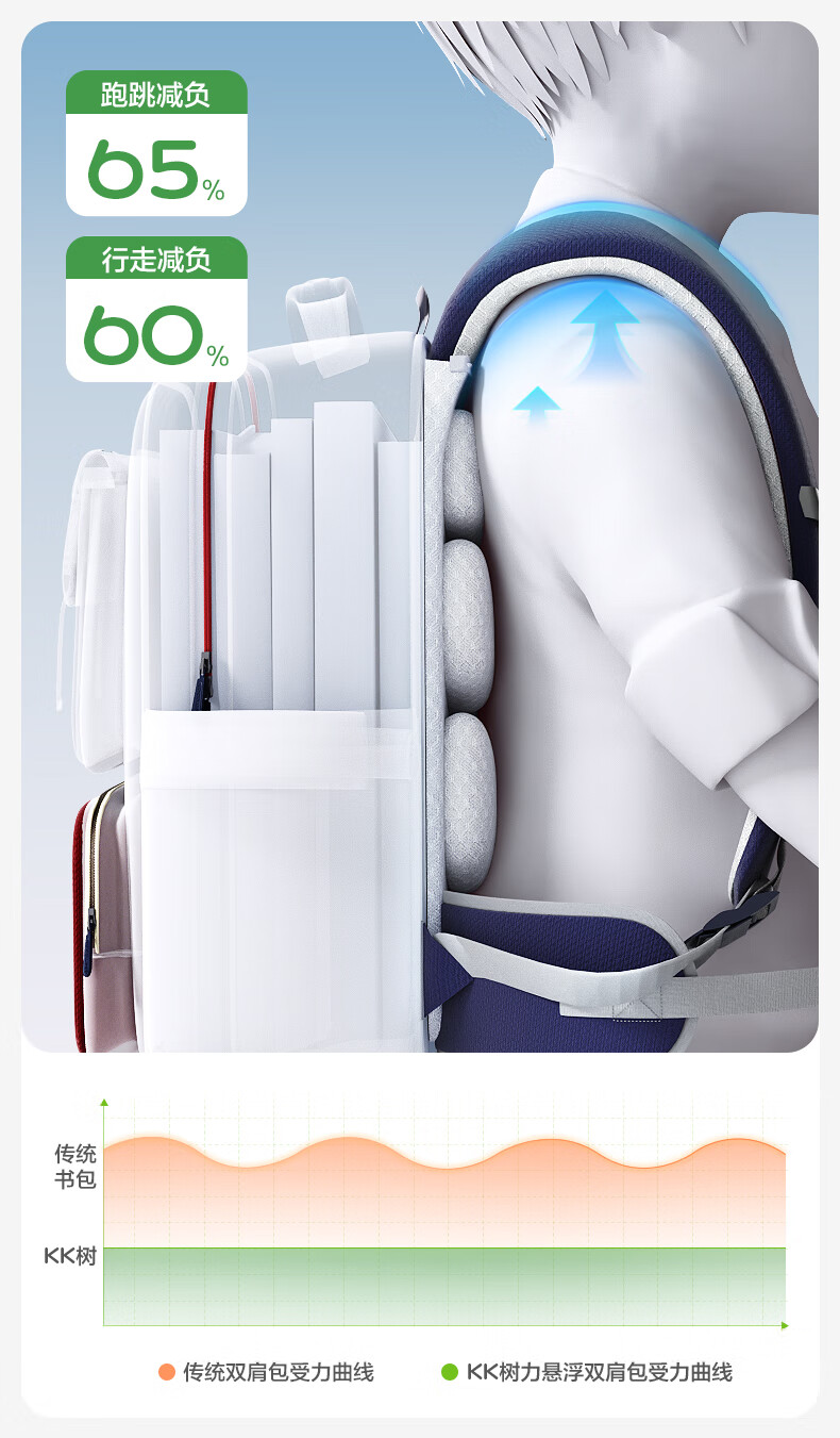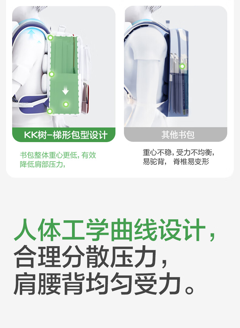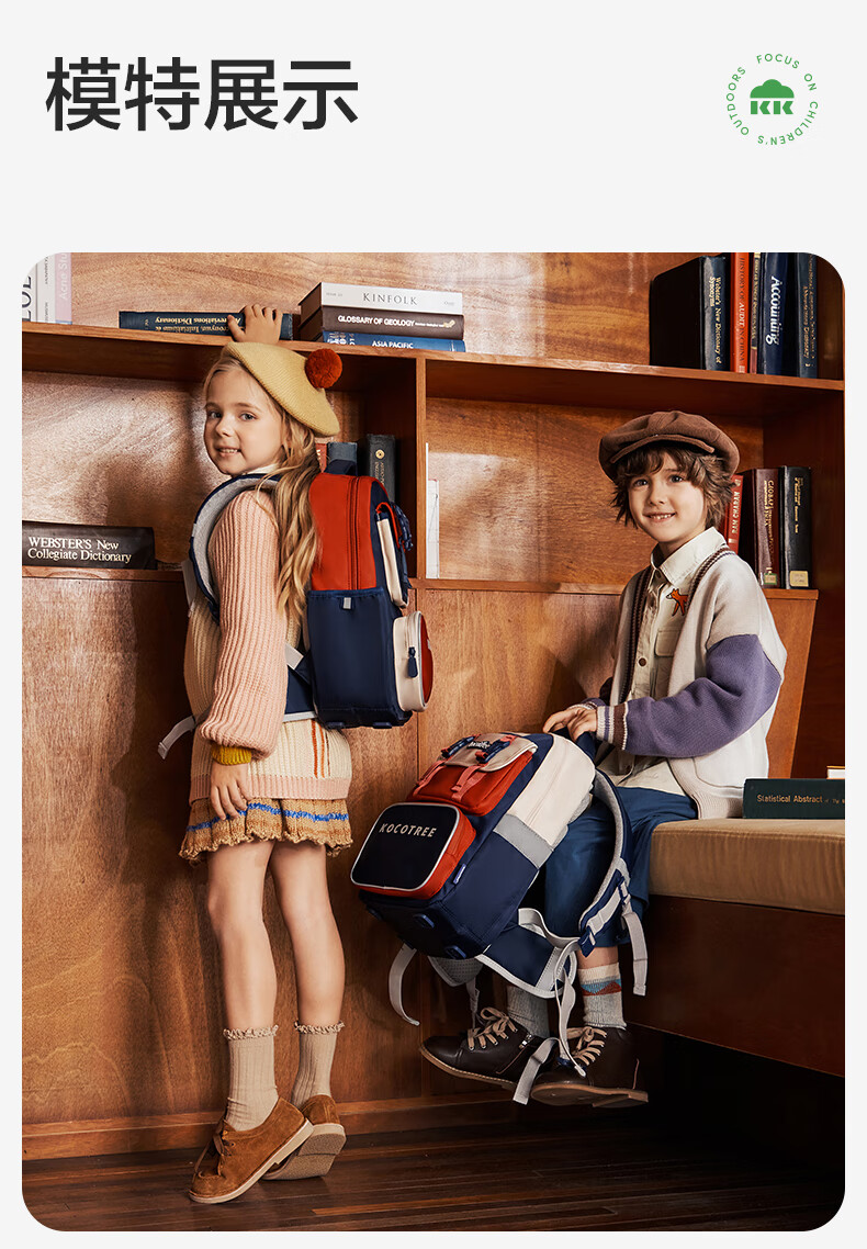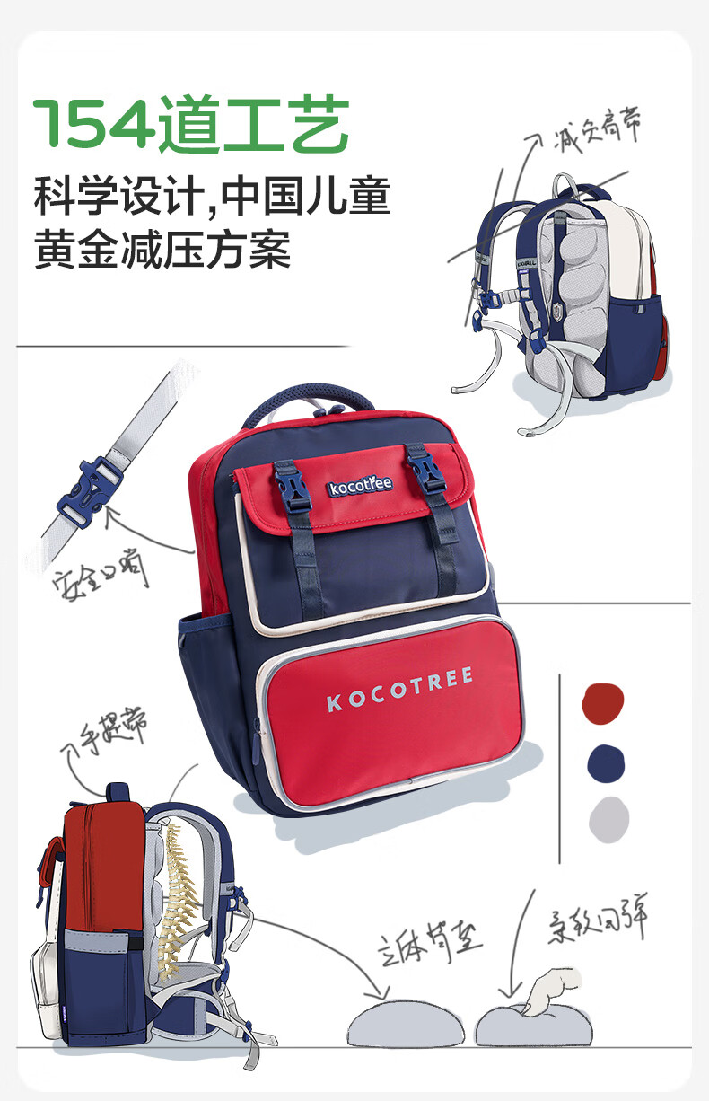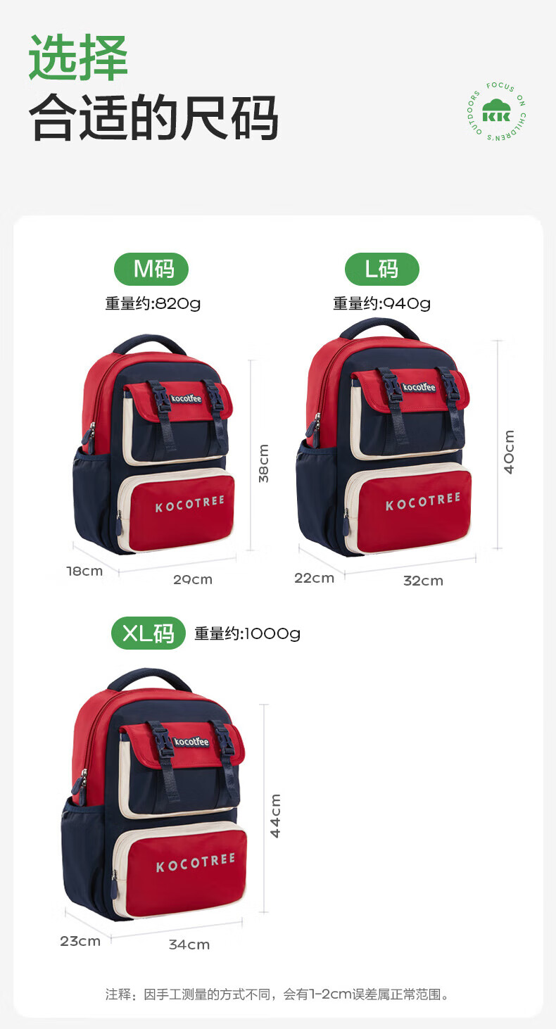Kocotreekk树书包小学生减负超轻男孩女生4-6年级背包大容量儿童书包红XL