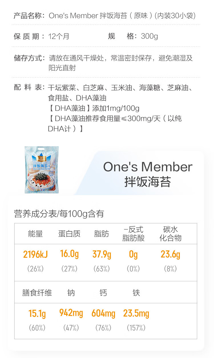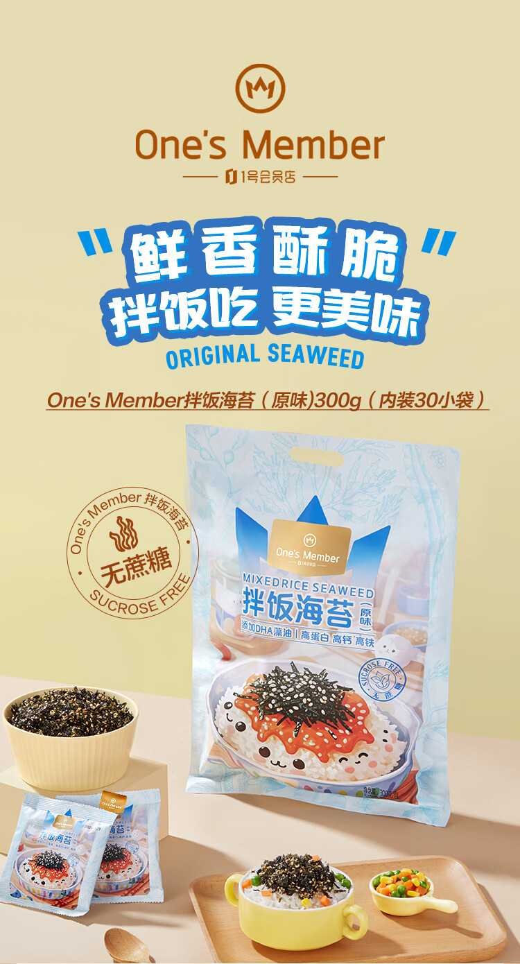 1号会员店 拌饭海苔原味300g(内含30小包)即食饭团 儿童零食