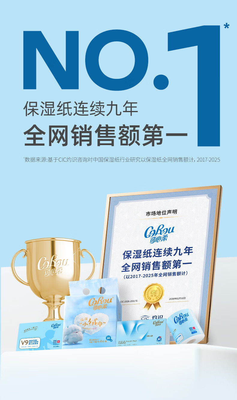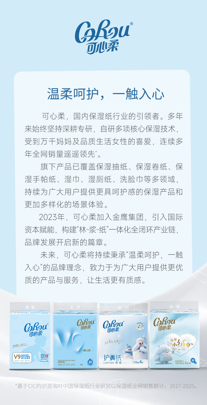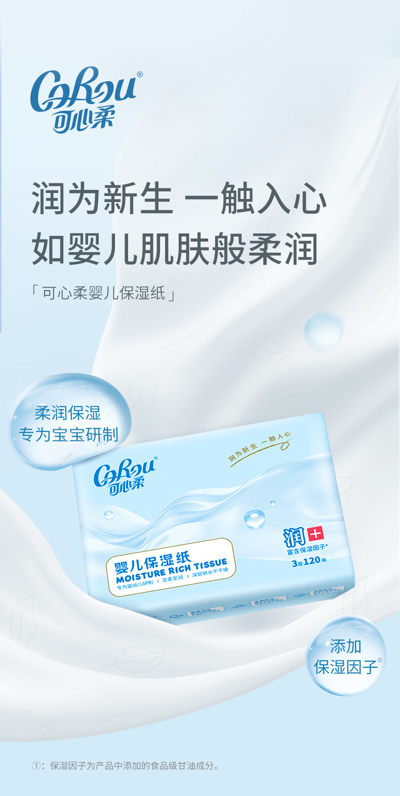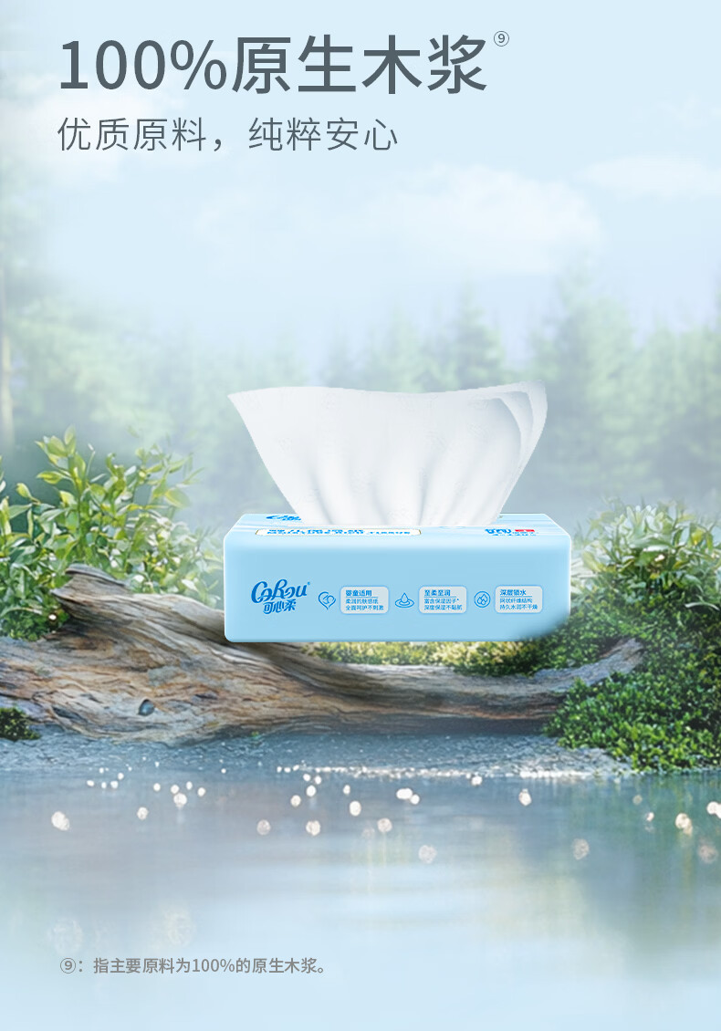 可心柔(COROU)保湿纸 云柔巾 3层120抽15包 加大S码抽纸 整箱 乳霜纸 宝宝纸