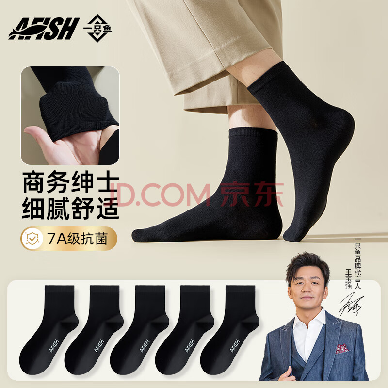 一只鱼袜子男士商务袜7a级抗菌防臭春夏季短筒短袜休闲棉袜透气