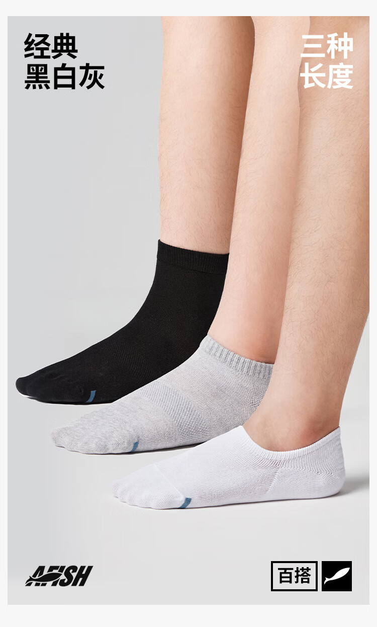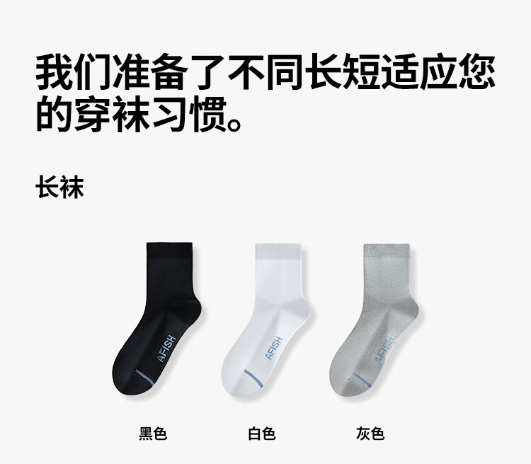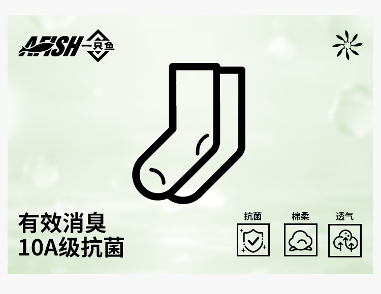一只鱼袜子男士10A级抗菌防臭春夏季运动袜中筒长袜休闲棉袜透气