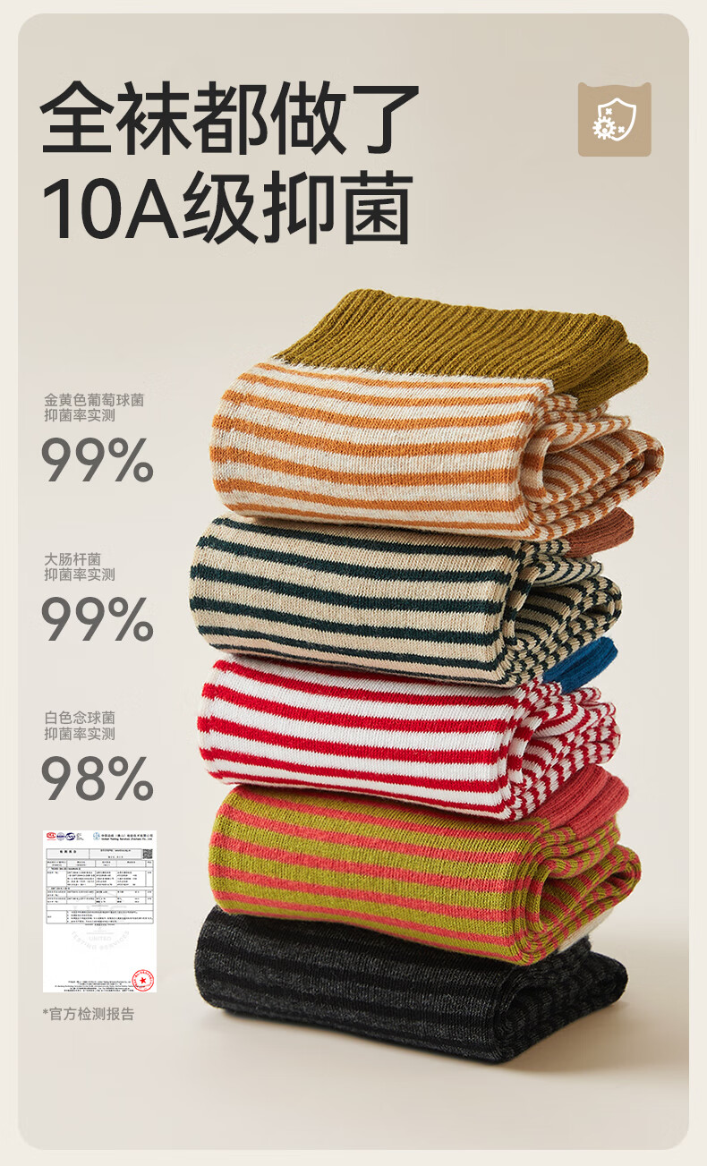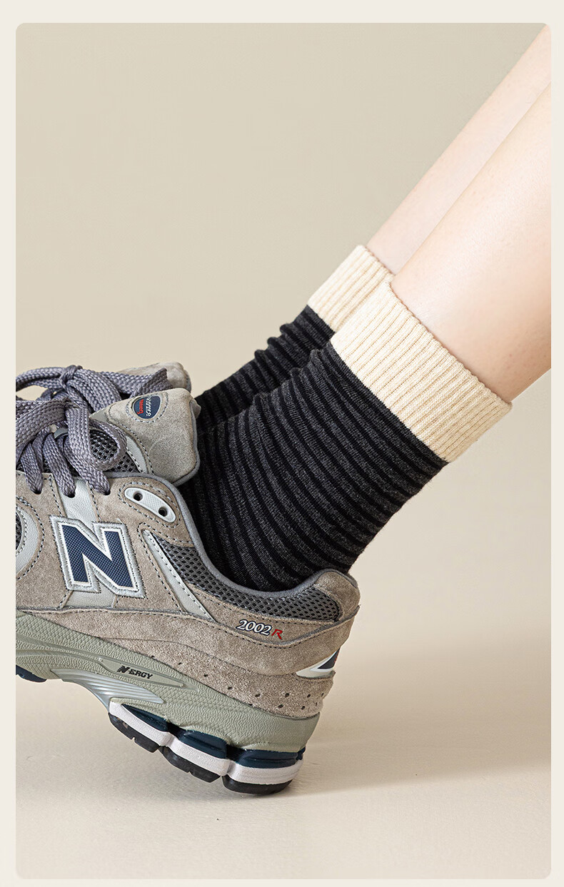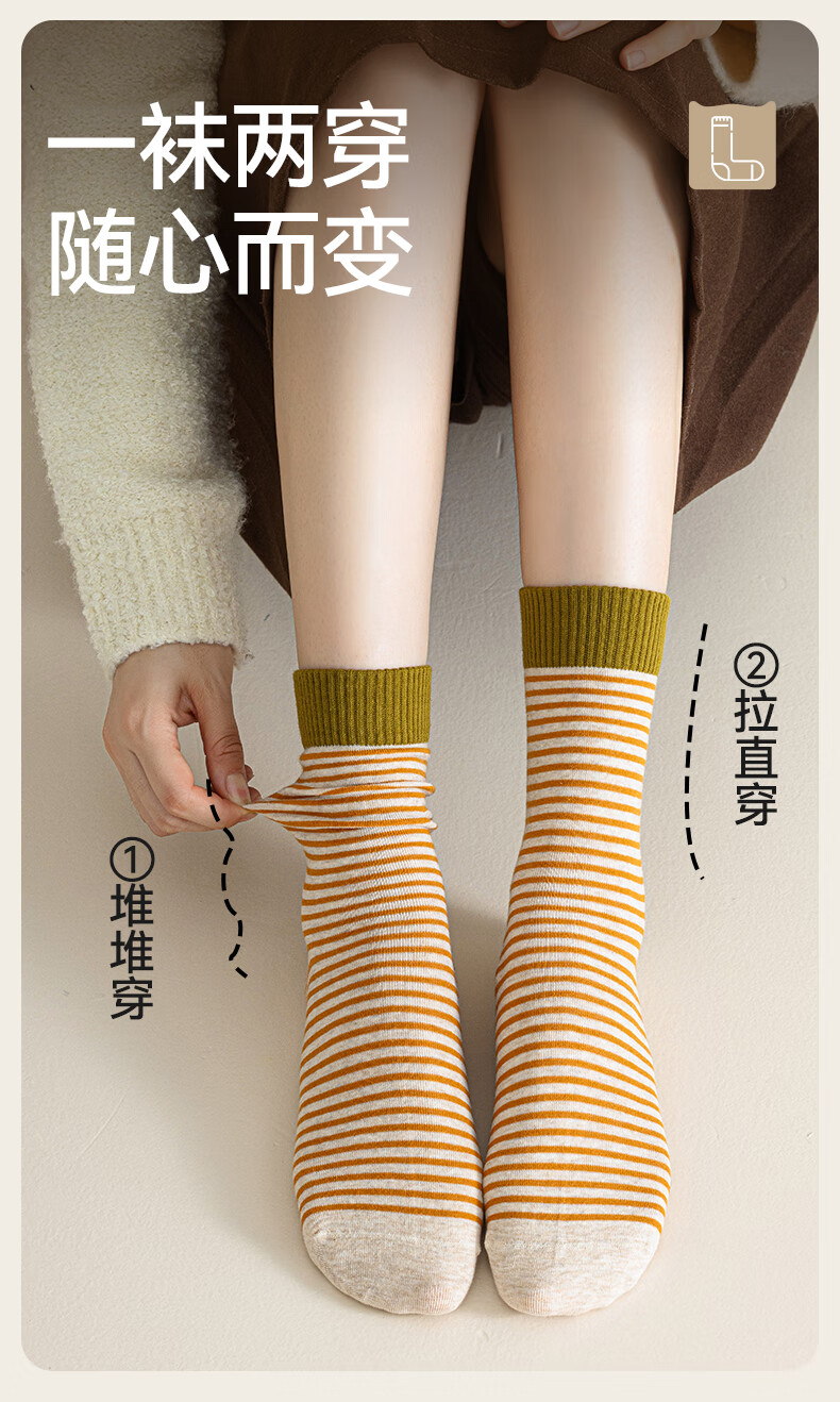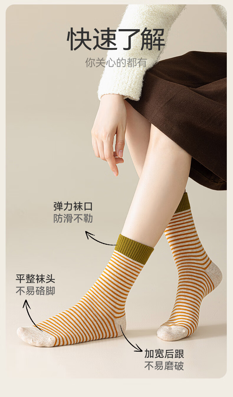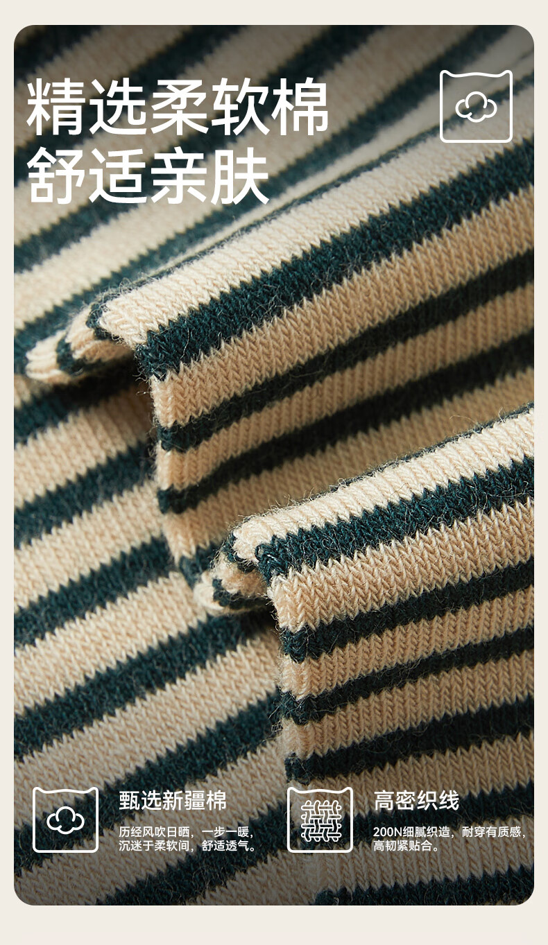 猫人女士袜子女【撞色条纹】春夏美拉德中筒袜防臭10A抑菌长袜女5双