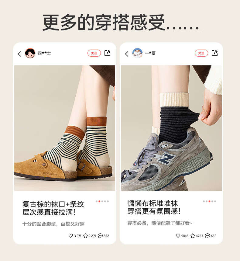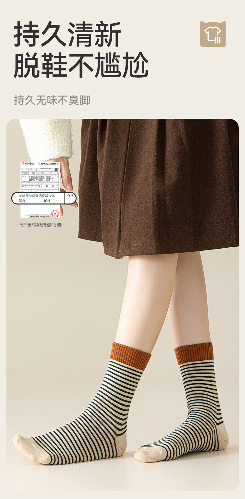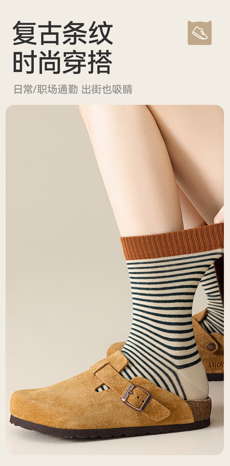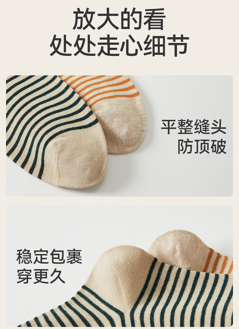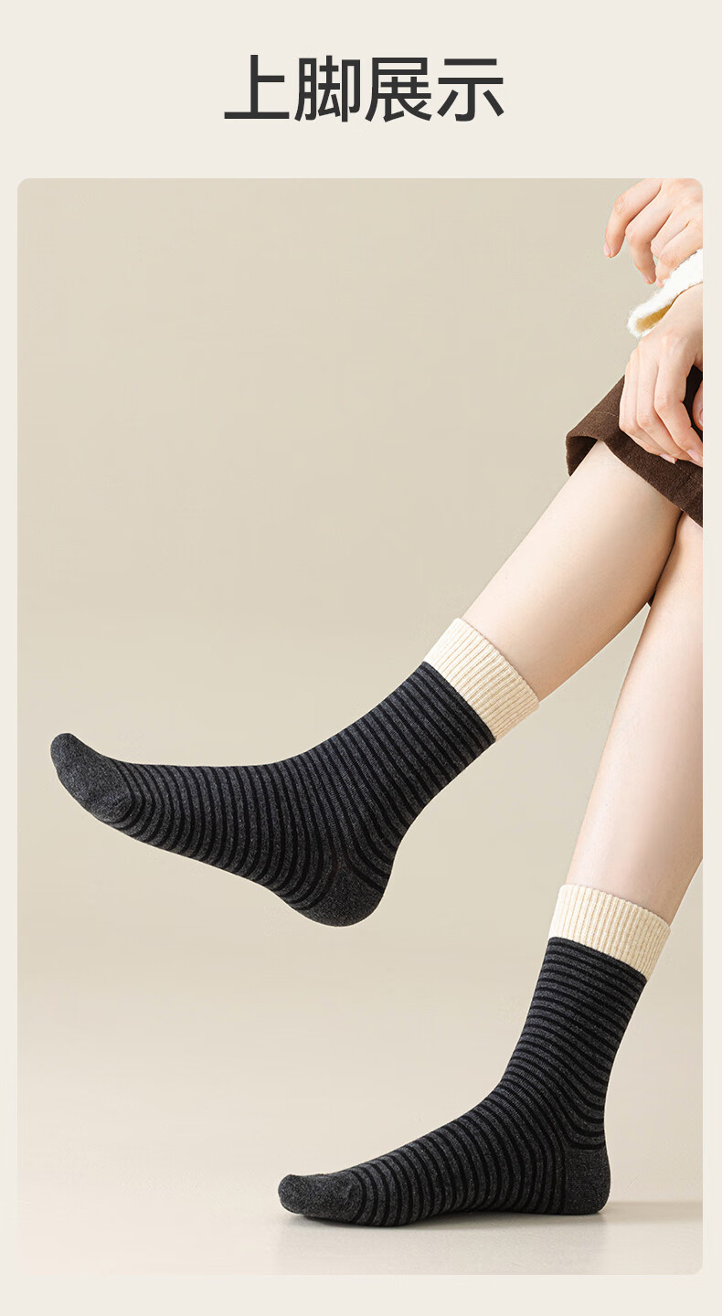 猫人女士袜子女【撞色条纹】春夏美拉德中筒袜防臭10A抑菌长袜女5双