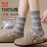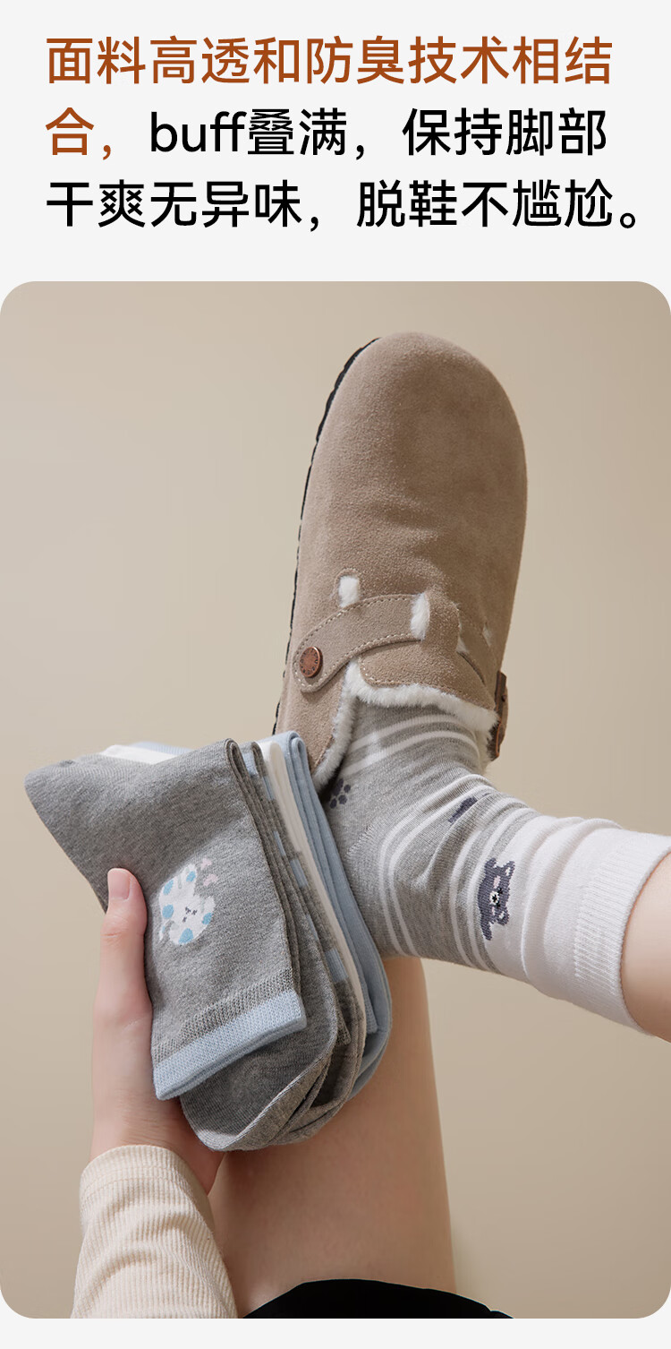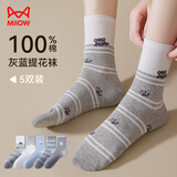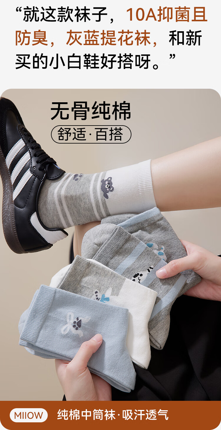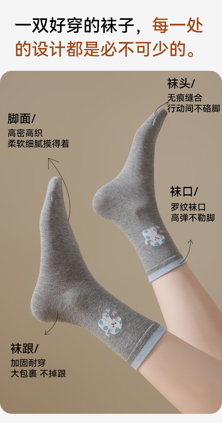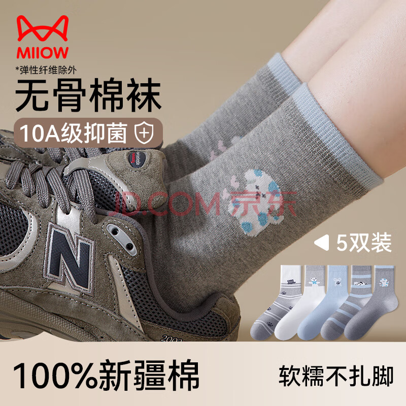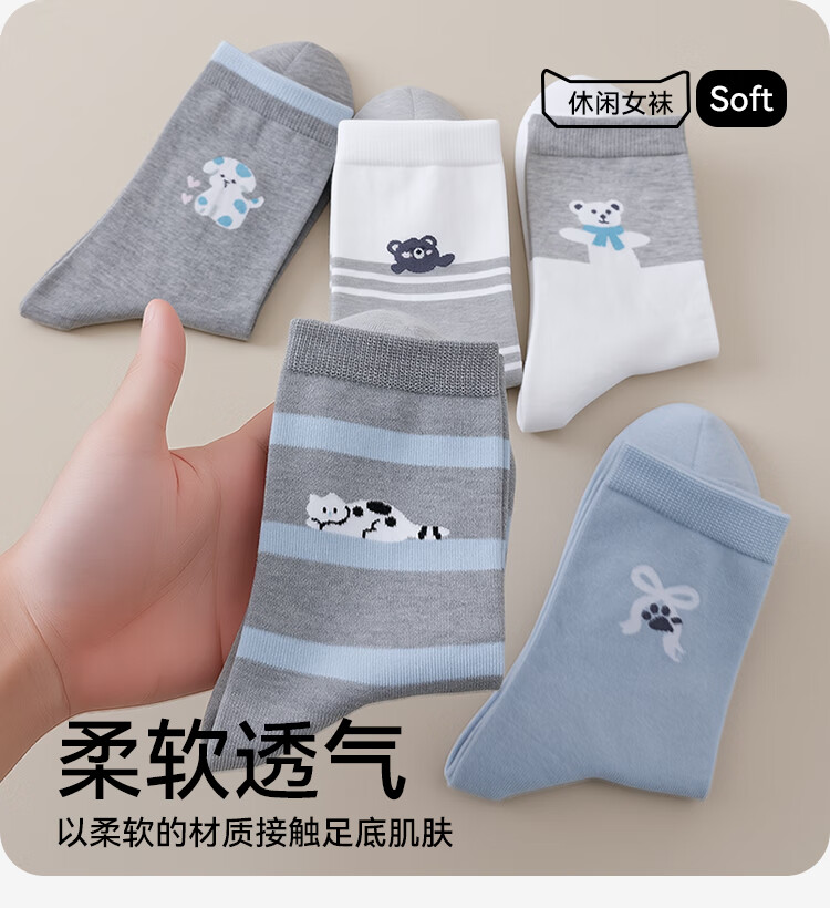 猫人5双女士袜子女夏季纯棉中筒袜可爱动物ins潮日系卡通学院风棉袜