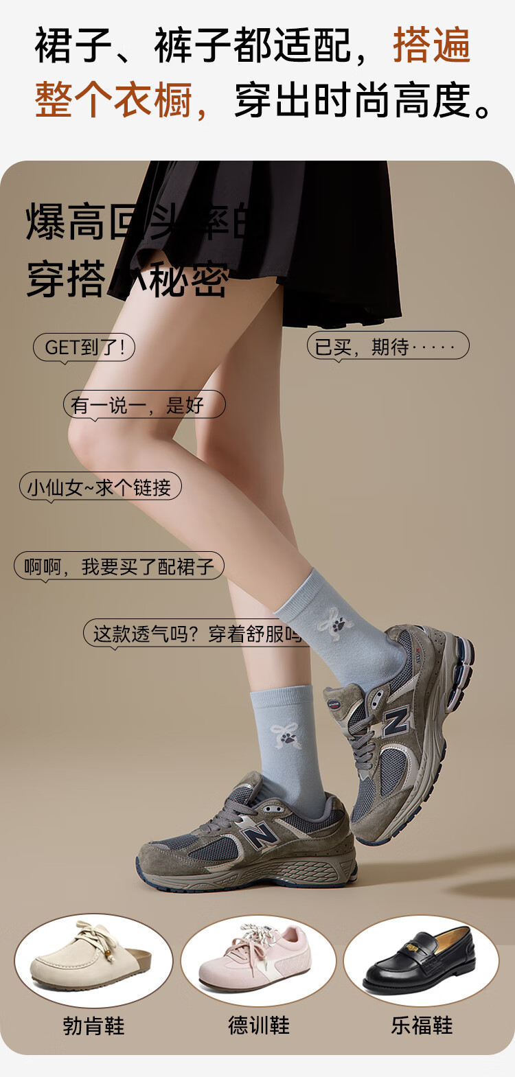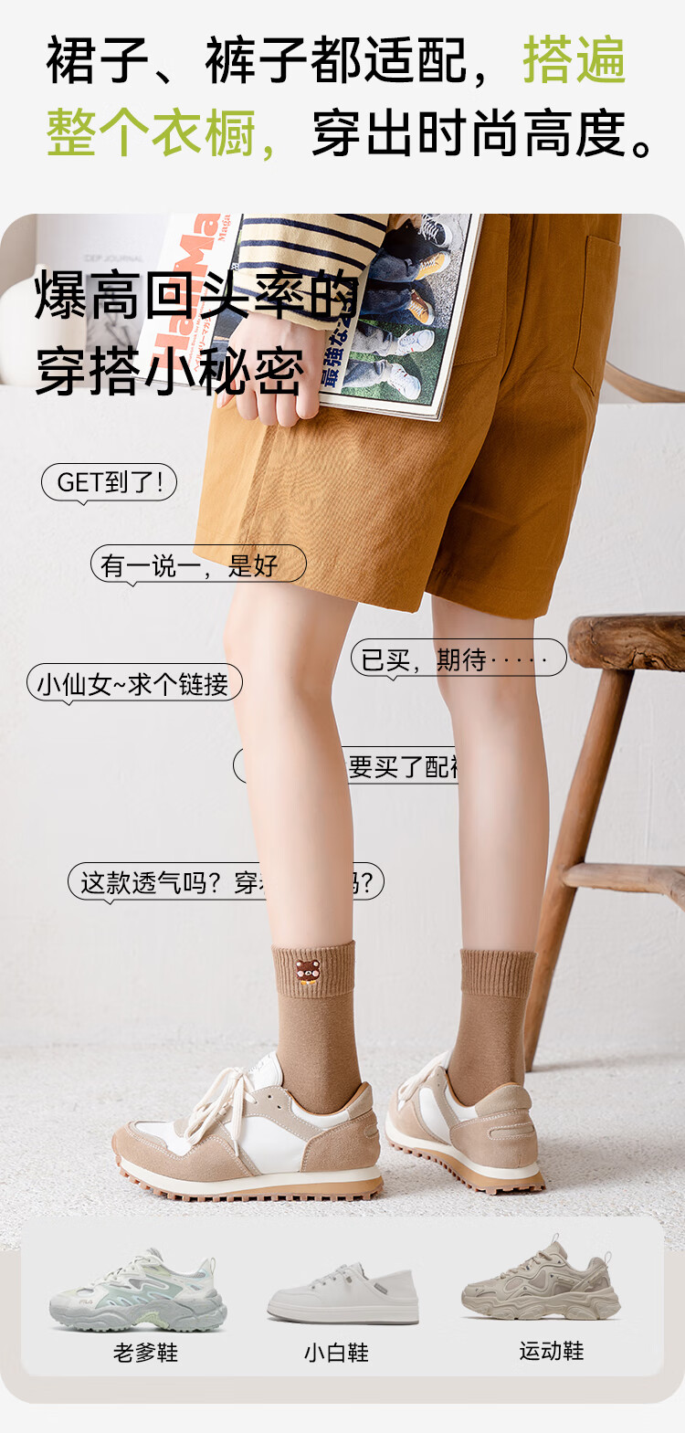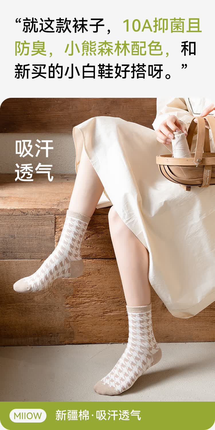 親相见孙颖莎同款女士袜秋季中筒纯色印花时尚百搭袜子精