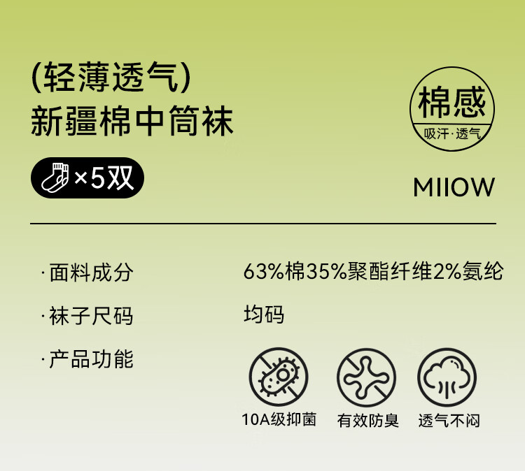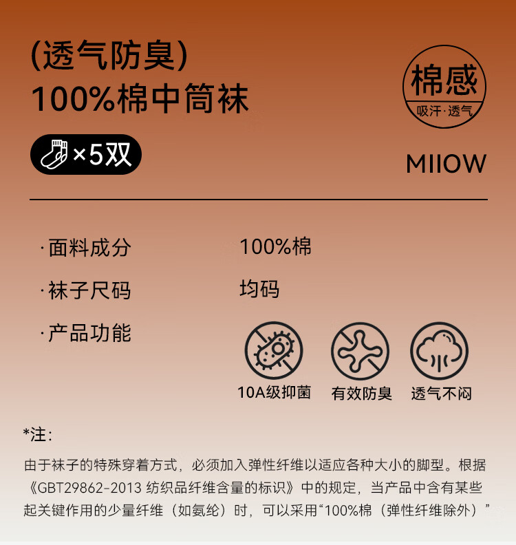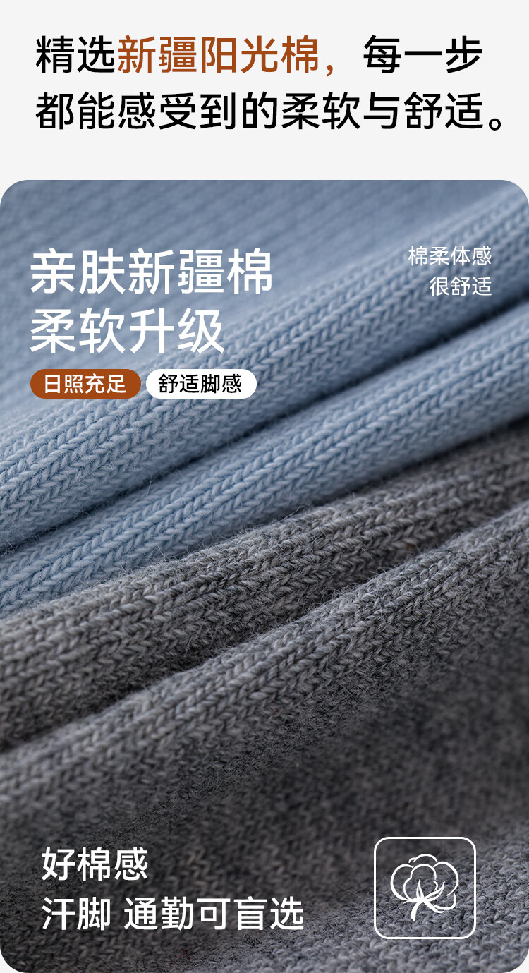 海澜之家袜子男女中筒纯棉100%棉抗菌消臭抗起球纯色运动