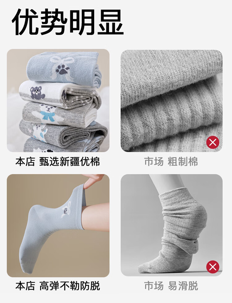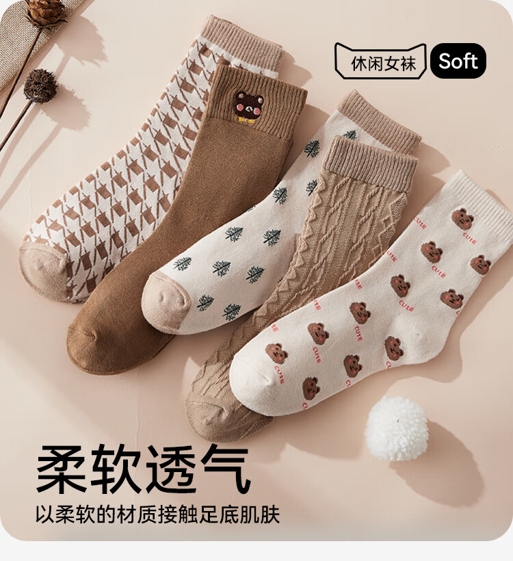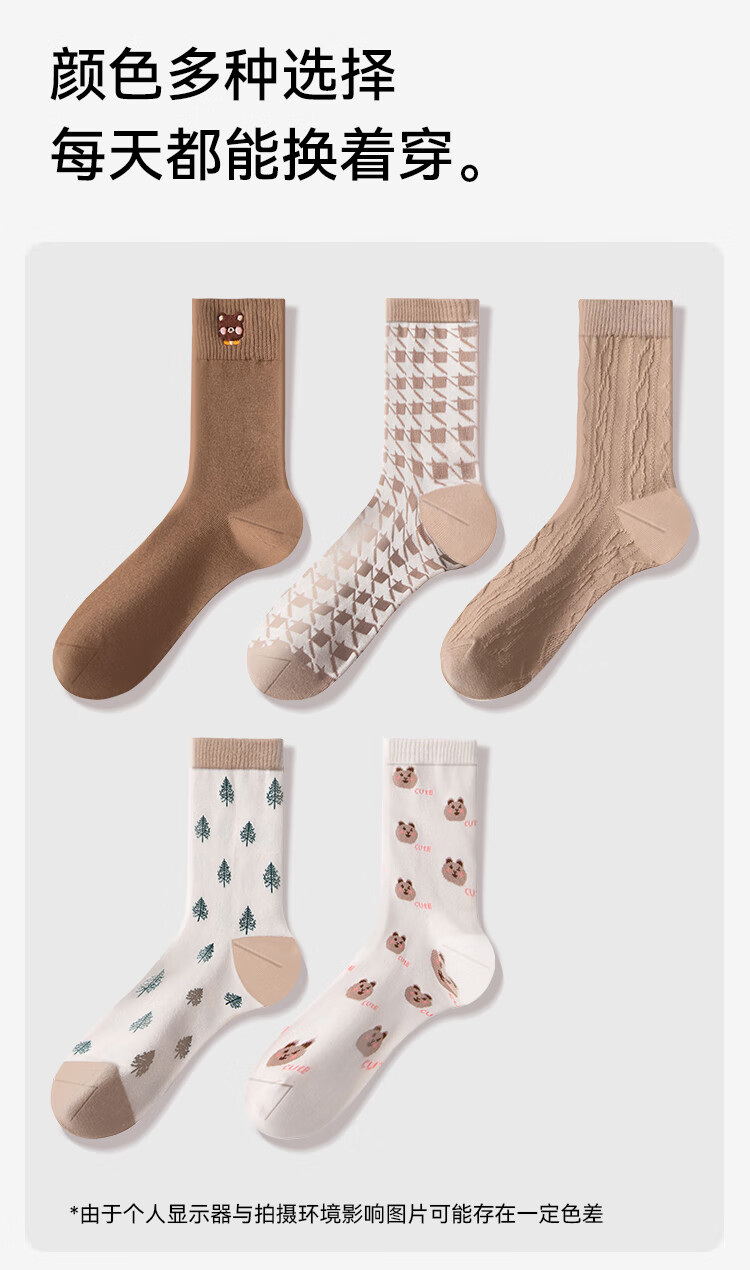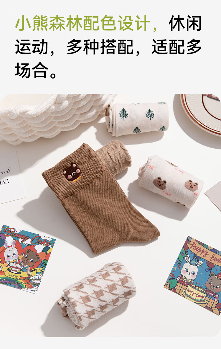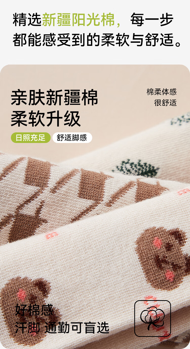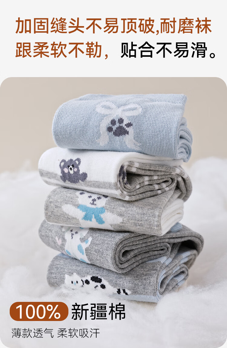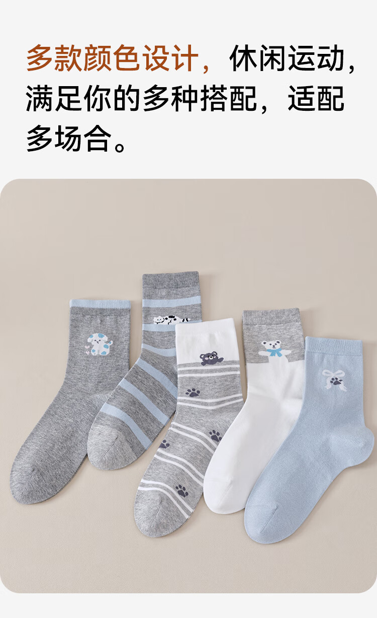 纯棉卡通中筒袜-5双