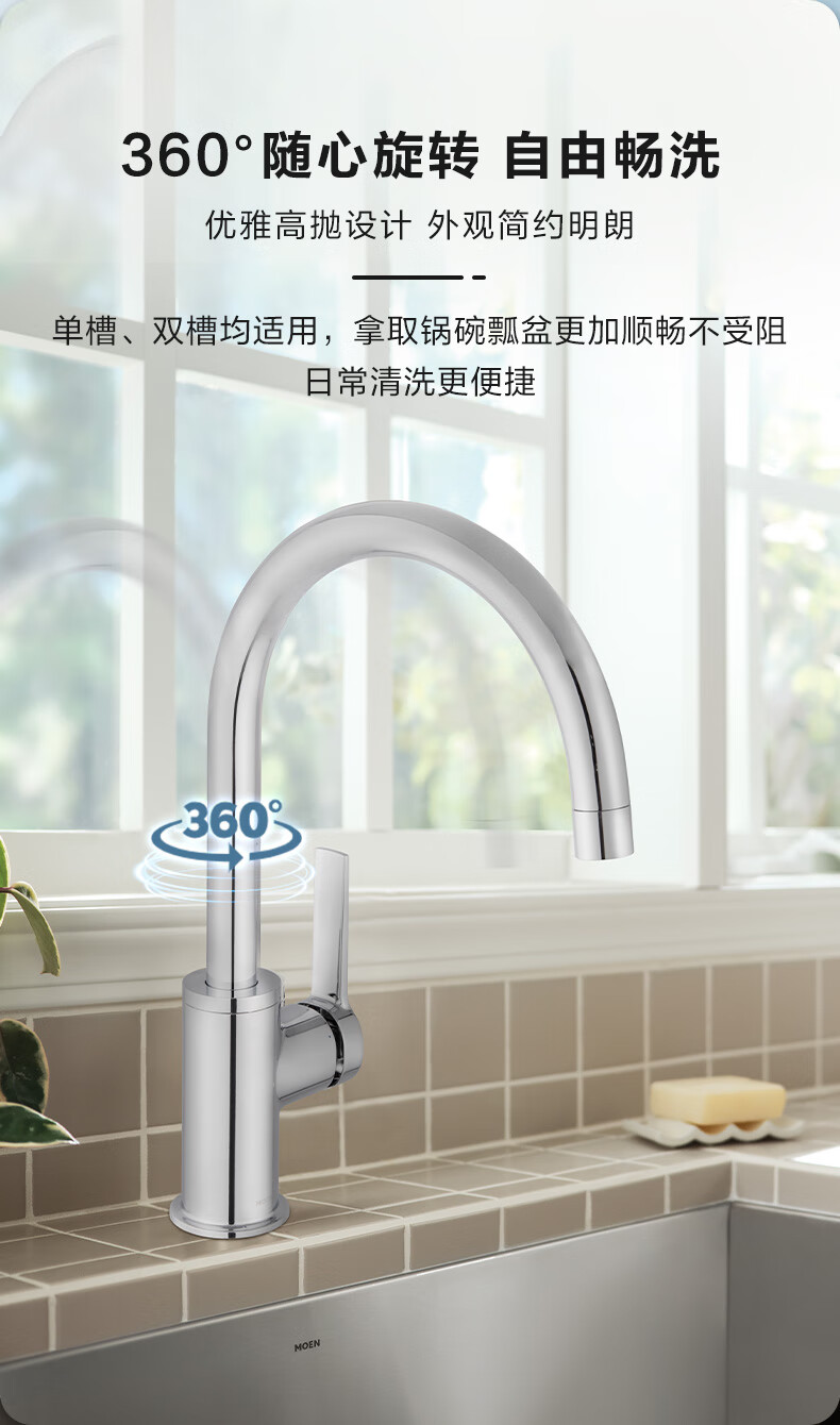 摩恩(MOEN)厨房水龙头冷热净铅水槽洗菜盆防飞溅水龙头