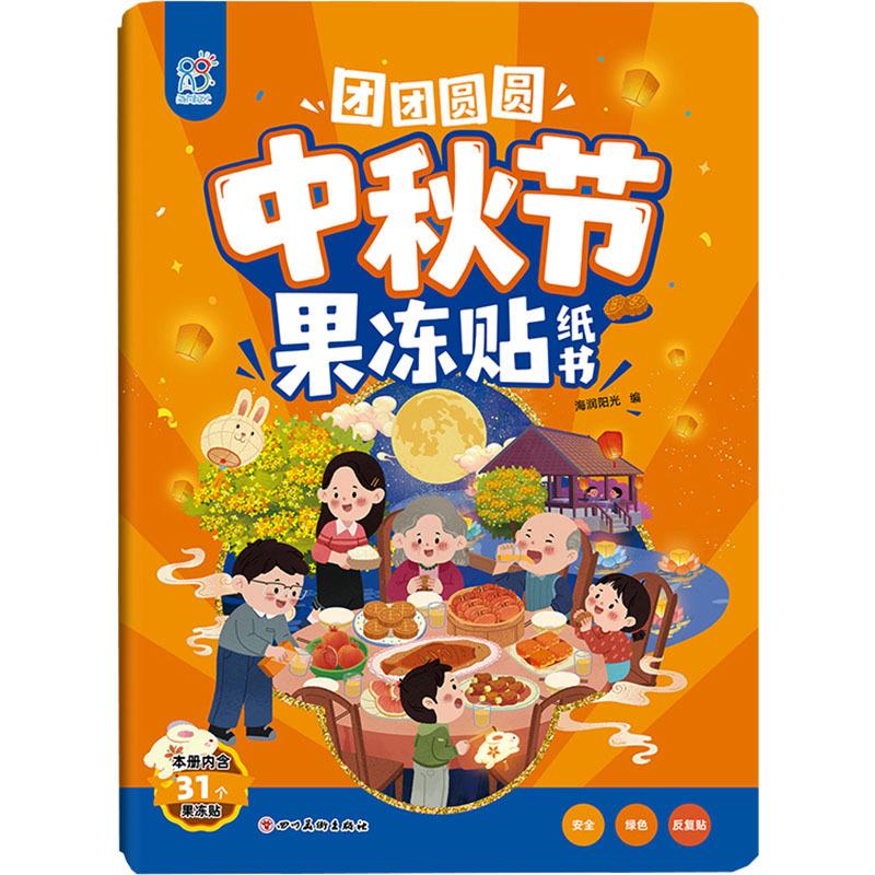 《团团圆圆中秋节果冻贴纸书》是一本以中秋节为主题的趣味果冻贴纸书,专为3~6岁儿童设计,通过温馨祥和的全景画面和可反复粘贴的果冻贴纸,带领孩子沉浸式体验月满团圆的中秋佳节。中秋节寄托着阖家团圆的美好期许,是孩子感受亲情温暖、了解传统文化的重要窗口。本书画面生动展现了果园丰收、泛舟赏月、吃团圆饭及放河灯等有趣活动与民俗场景,让孩子在趣味互动中自然理解中秋节团圆与祈福的意义。