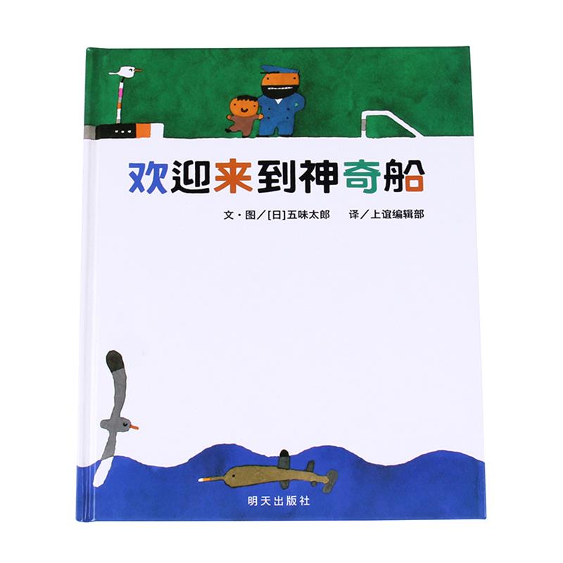 “哇,好大的船!”“你想去看看吗?”“可以吗?”“当然可以啊!”于是小男孩搭上橘色的小直升机,越过蓝蓝的大海,飞到白色的大船上。穿着深蓝色舰长服、精神抖擞的船长已经出来迎接了:欢迎来到神奇船!现在请搭电梯往下,准备进入船内的世界啰。船上的景物,果然令小男孩大开眼界。首先是有各种仪表板的操控室,接下来是什么书都有的图书馆,小虫子四处飞舞的植物园,小狗、来回走动的农场,可以攀岩和钻来钻去的儿童游戏室,还有一座动物园!你想和猴子一起吊在天花板上吗?先等一等,我们还要参观有公司和医院的城市,再去宽阔的原野散个步,等会儿还有火车经过呢……到了最后,竟然还有令人惊喜的结局——在大海的另一边,还有一艘好大的船,等着小男孩去探险呢!除了丰富的场景变化、时而出现的幽默感,五味太郎还创造出让人眼睛一亮、充满丰富色彩的世界。在第一个跨页里,橘色机身的小直升机上面是红白灰相间的螺旋桨,白色的大船航行在蓝色大海和绿色天空的交界处,白色海鸥的红色嘴上叼着一条小灰鱼,色彩缤纷却一点都不显杂乱,反而令人感到心旷神怡。而这还只是开场而已,整本书仿佛是多彩的游乐园,好玩又好看,五味太郎真是太神奇了!这么不可思议的船上世界,只有五味太郎办得到!