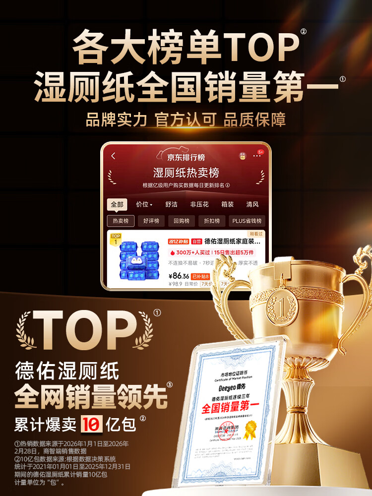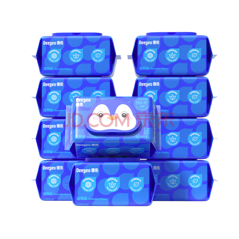 德佑湿厕纸家庭装80抽*10包XL码 湿厕卫生纸湿纸巾厕纸 三重植萃养护