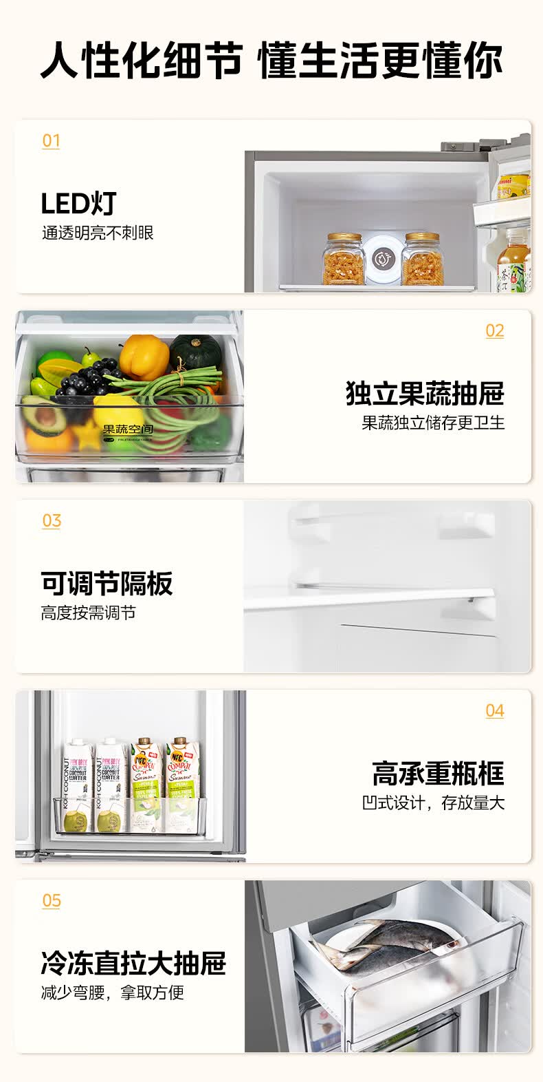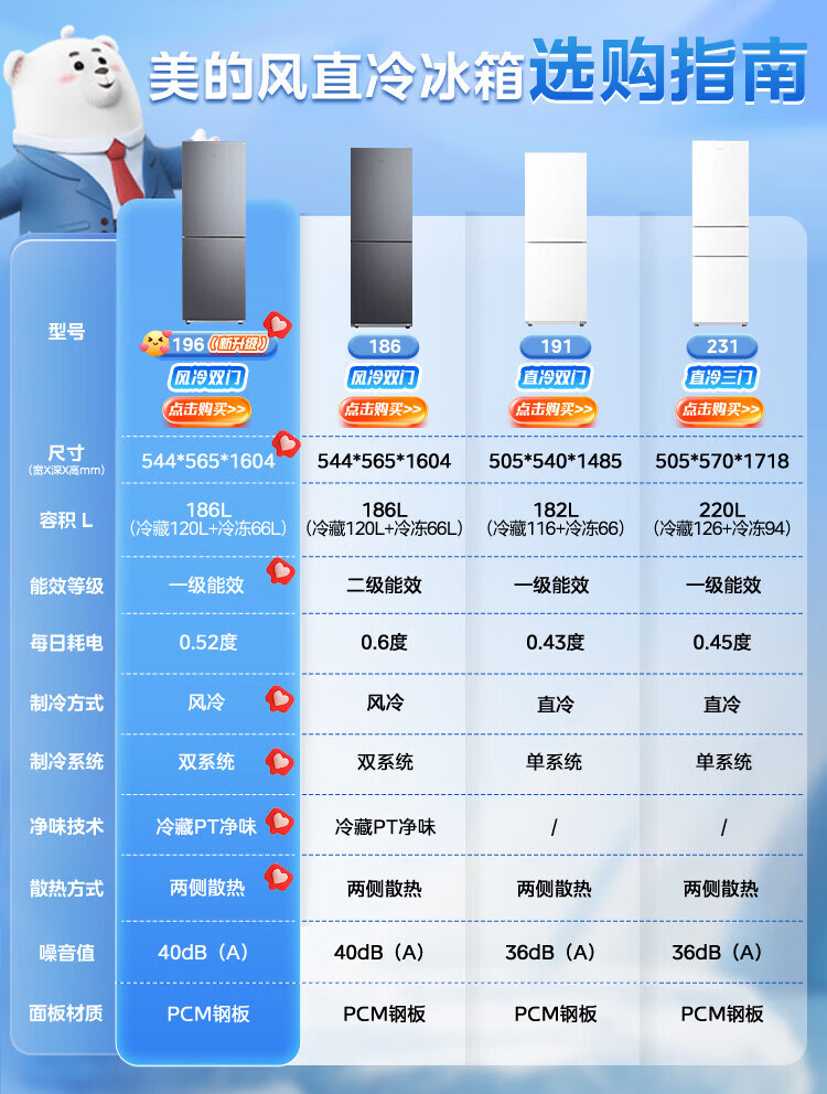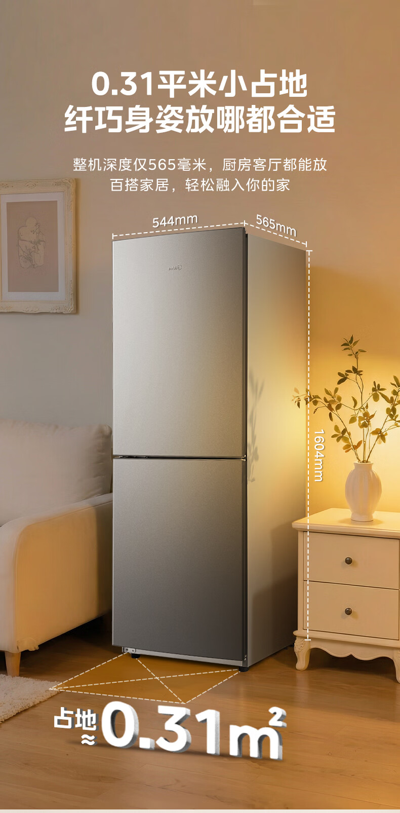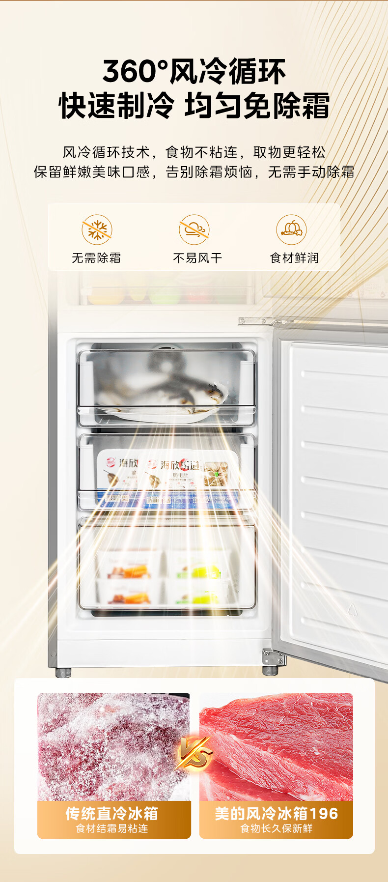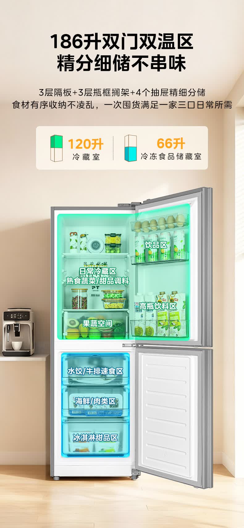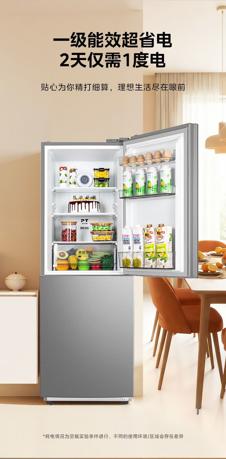 美的(Midea)「一级能效风冷无霜」186升两门冰箱小户型家用省电双门双系统不串味 钛钢灰MR-196W