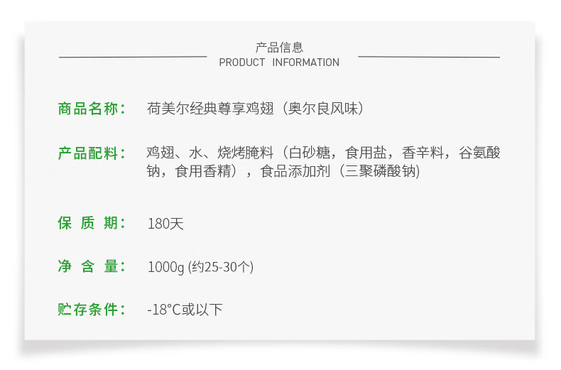 荷美尔(Hormel)奥尔良风味尊享鸡翅2斤装 1000g 烤翅炸鸡翅半成品 空气炸锅食品