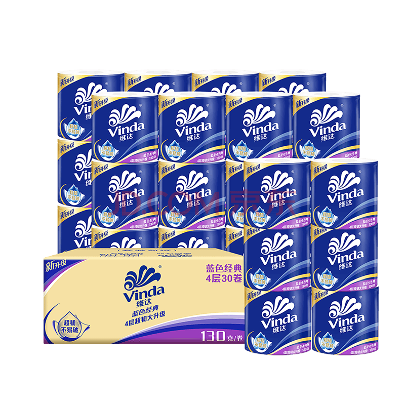 维达(Vinda)有芯卷纸 蓝色经典4层130克*30卷 厚韧耐用 卫生纸 卷筒纸纸巾