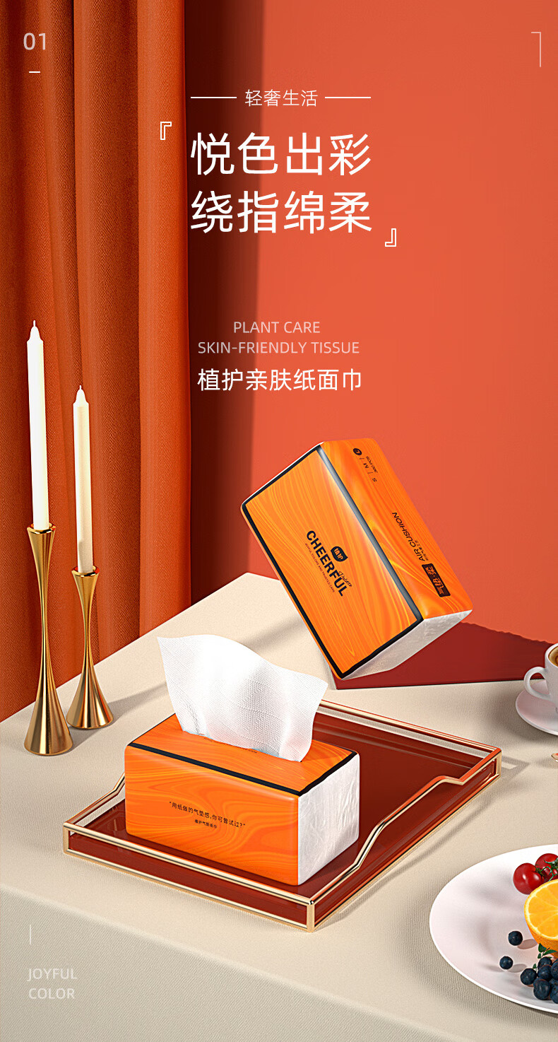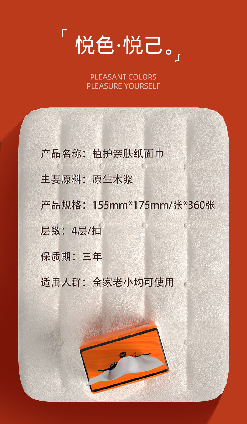 植护气垫抽纸4层360张*40大包纸抽整箱批发悦色橙餐巾纸卫生纸面巾纸