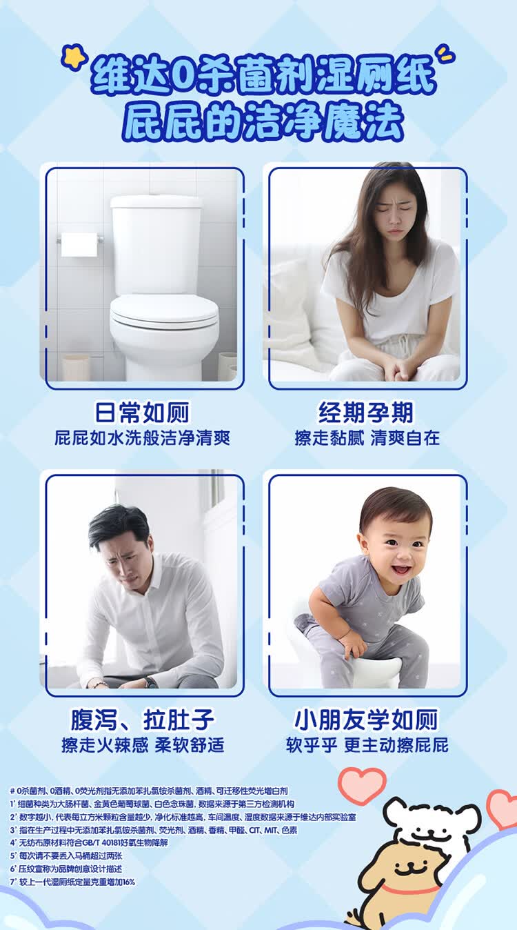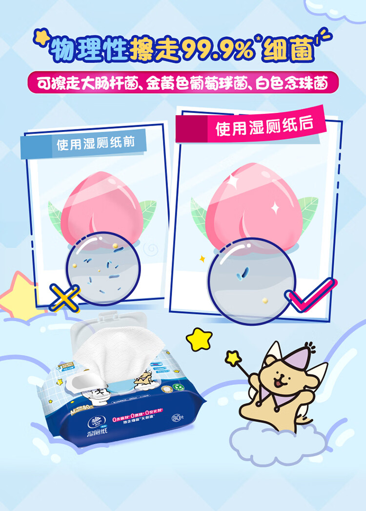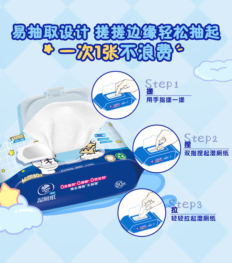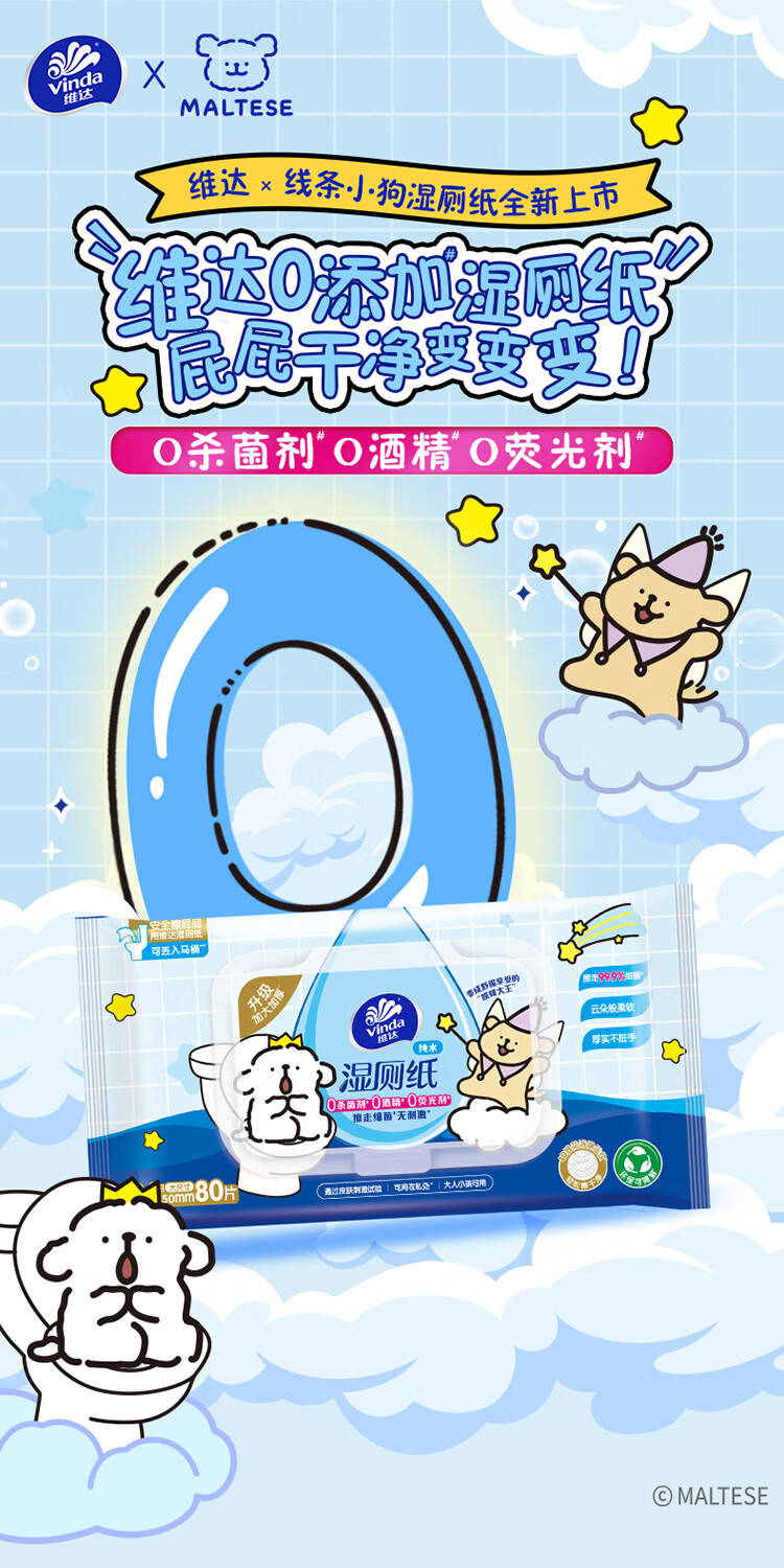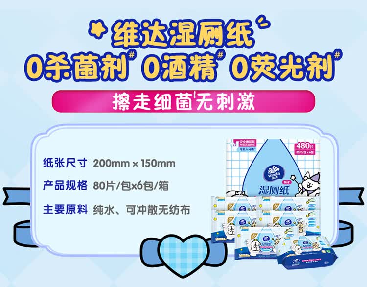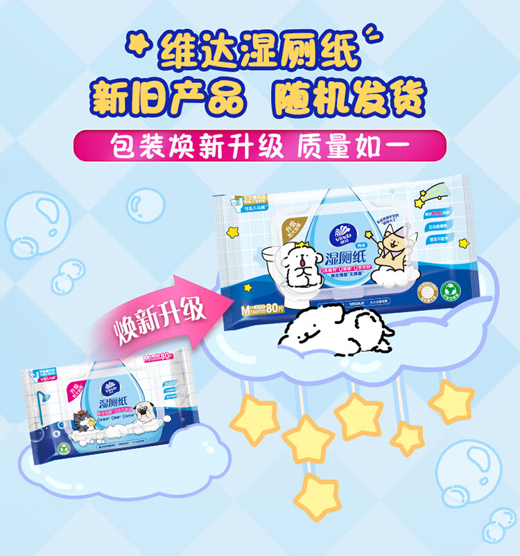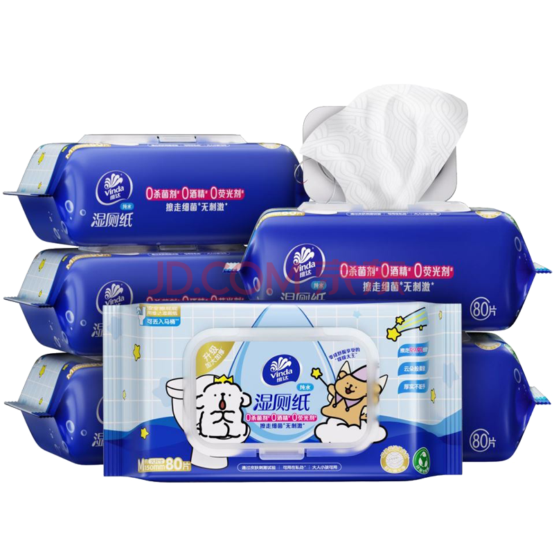维达(Vinda)湿厕纸 家庭装80片*6包 线条小狗 加厚湿厕纸纯水湿纸巾厕纸湿巾