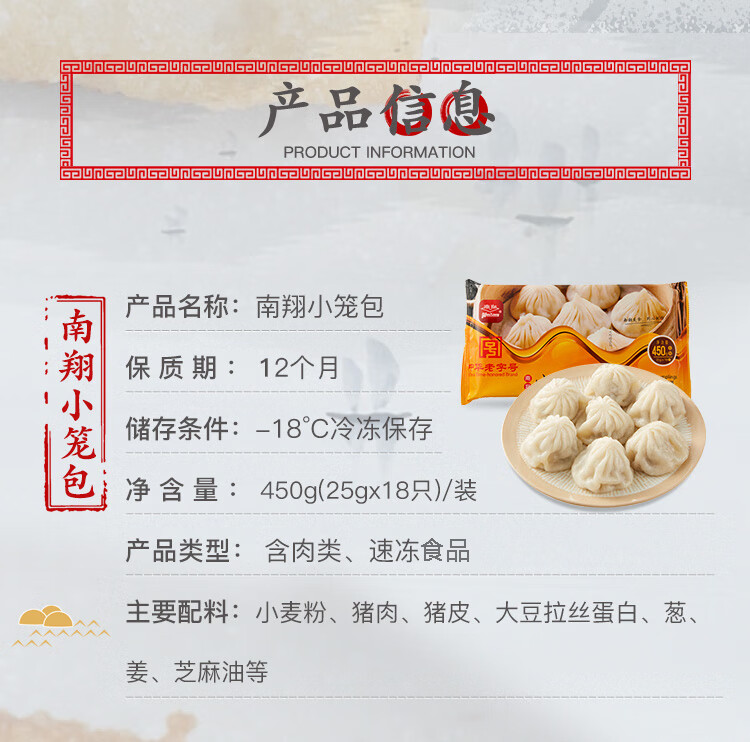 南翔小笼包450g(18只 )中华老字号速食早餐食品半成品速冻面点早饭