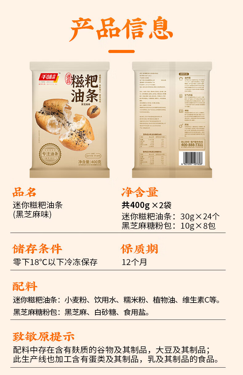 千味央厨迷你糍粑油条400g*2袋24根速冻儿童早餐食品半成品早点早饭速食