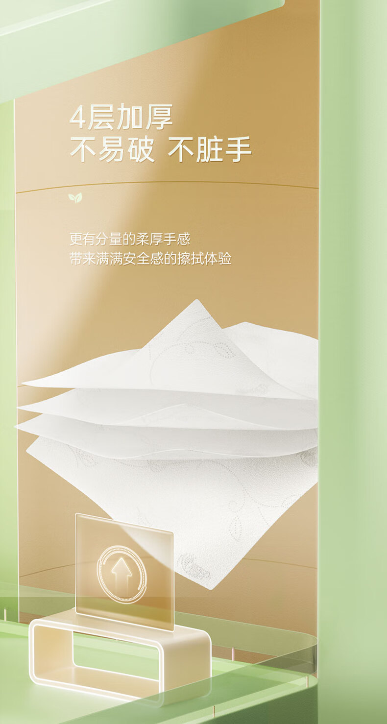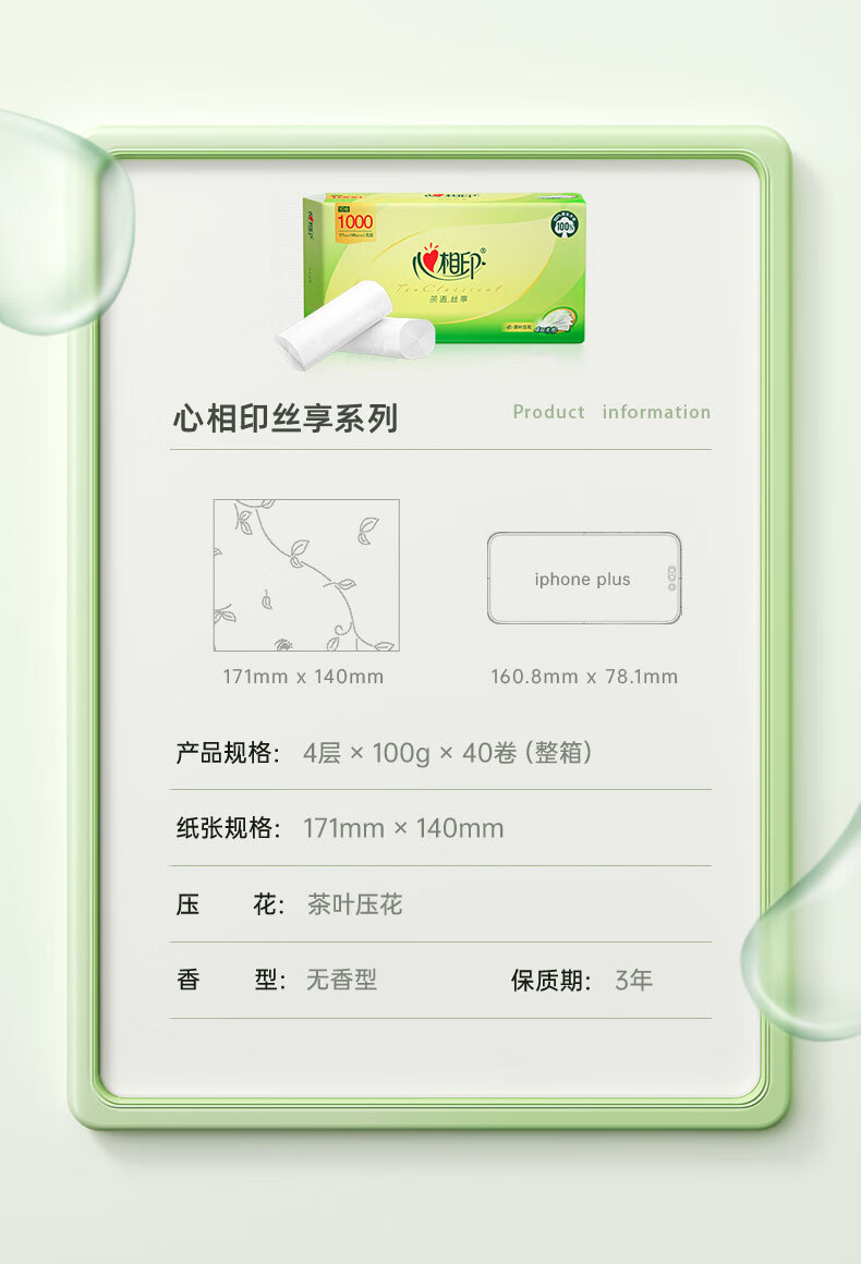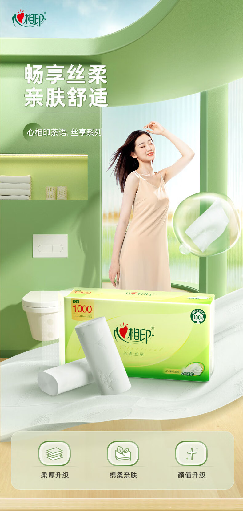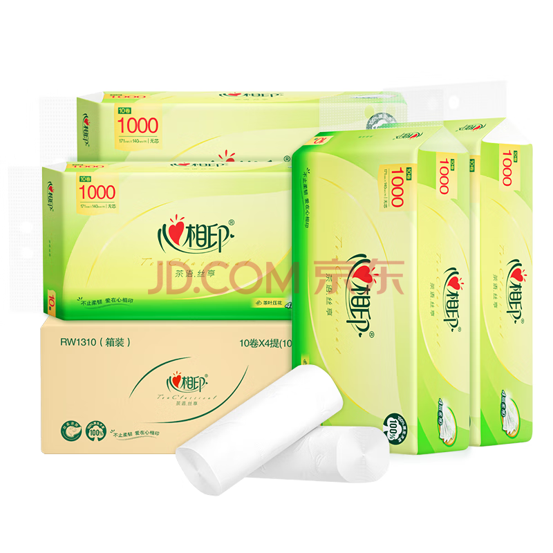 心相印无芯卷纸 茶语丝享4层100g*40卷 纸巾 卫生纸 整箱(新老交替)