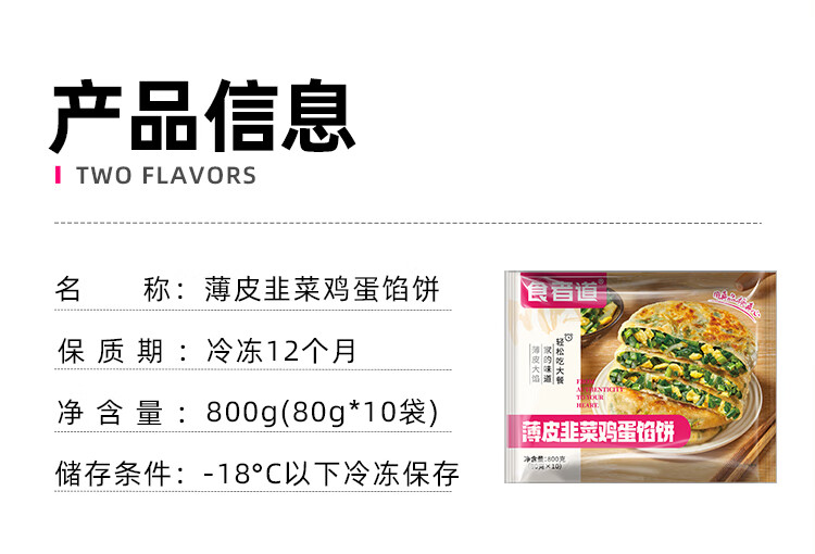 食者道韭菜鸡蛋馅饼800g/袋 早餐半成品葱油饼薄皮韭菜盒子早饭