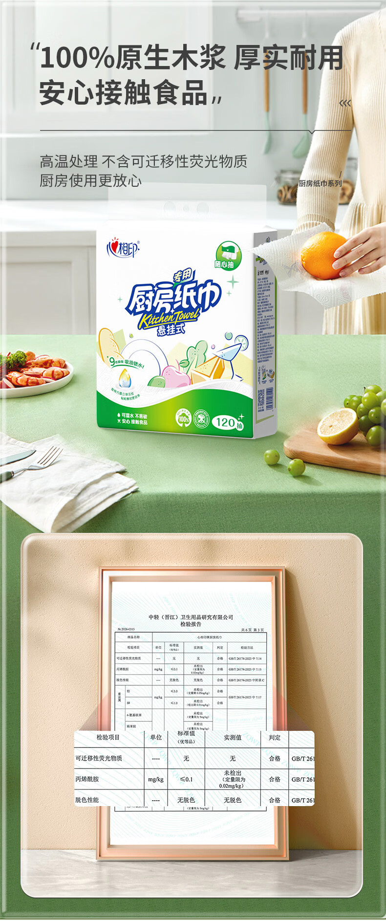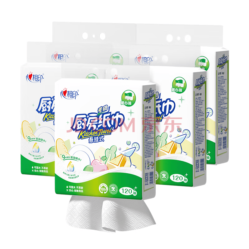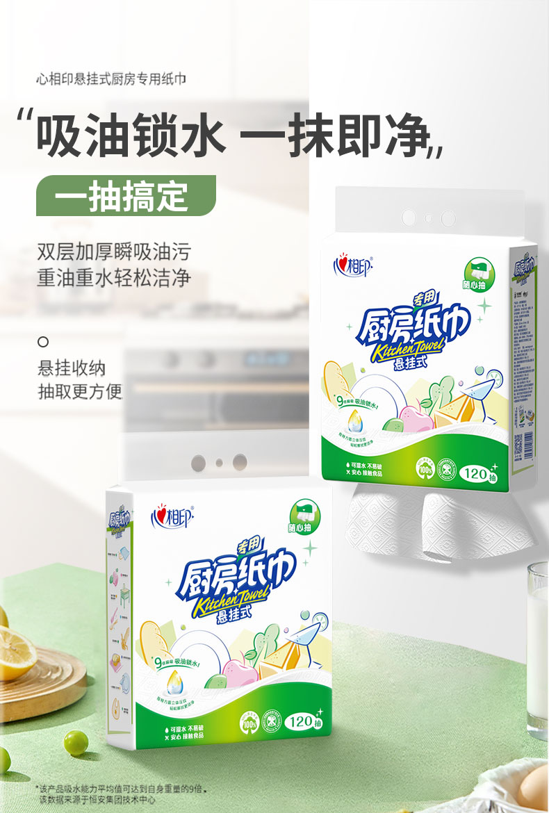心相印厨房用纸悬挂式抽纸120抽*5提整箱装 吸油锁水食品级加厚厨房纸
