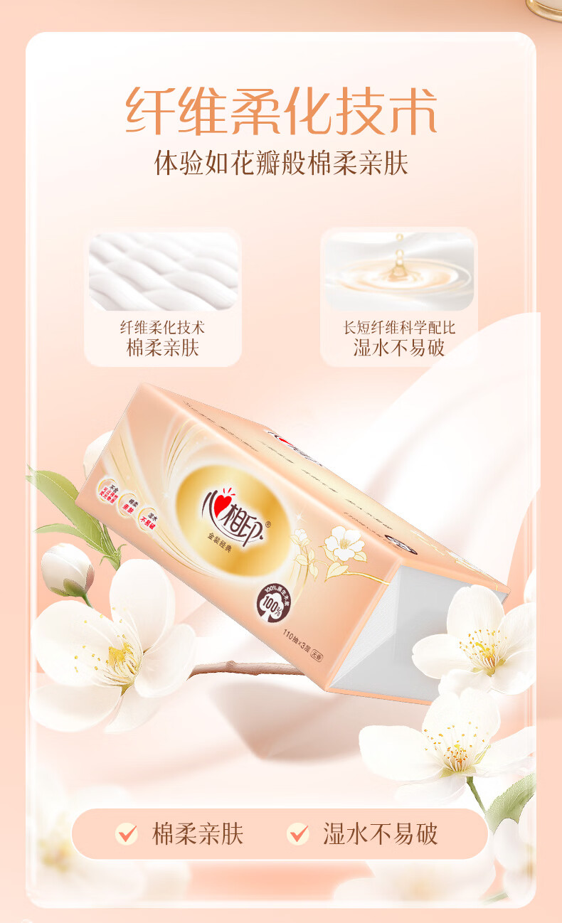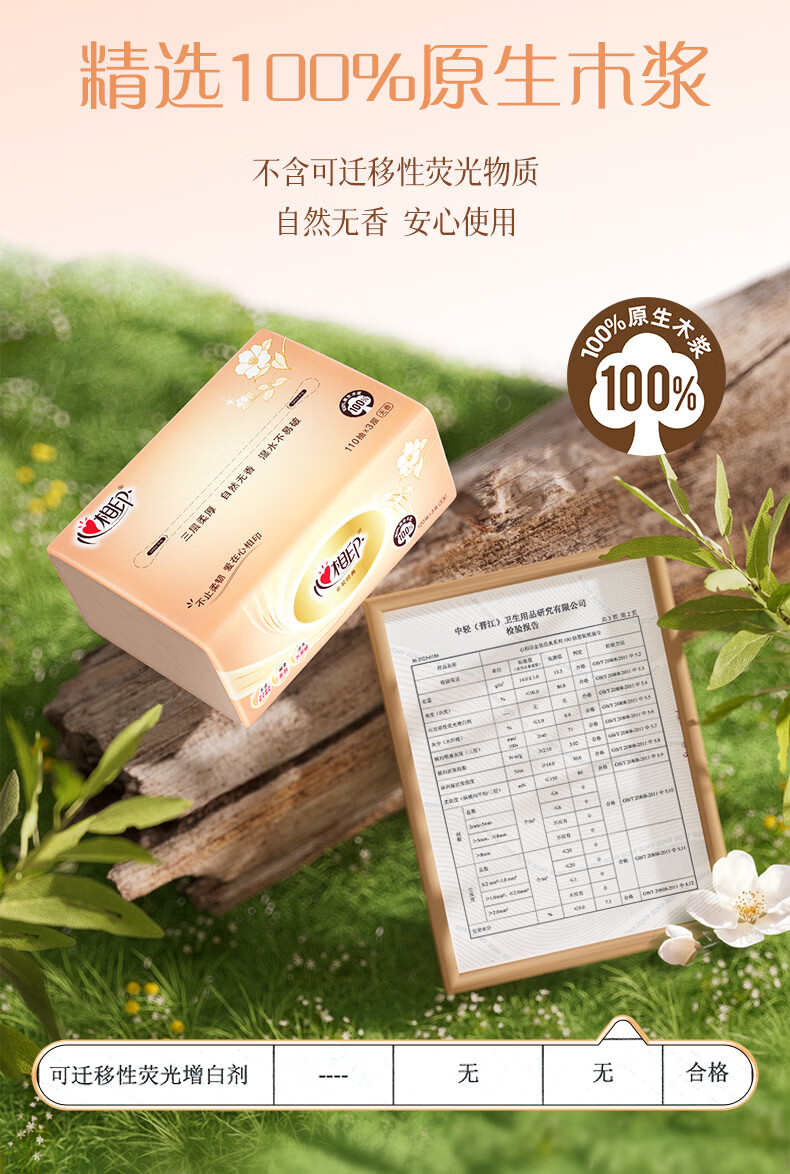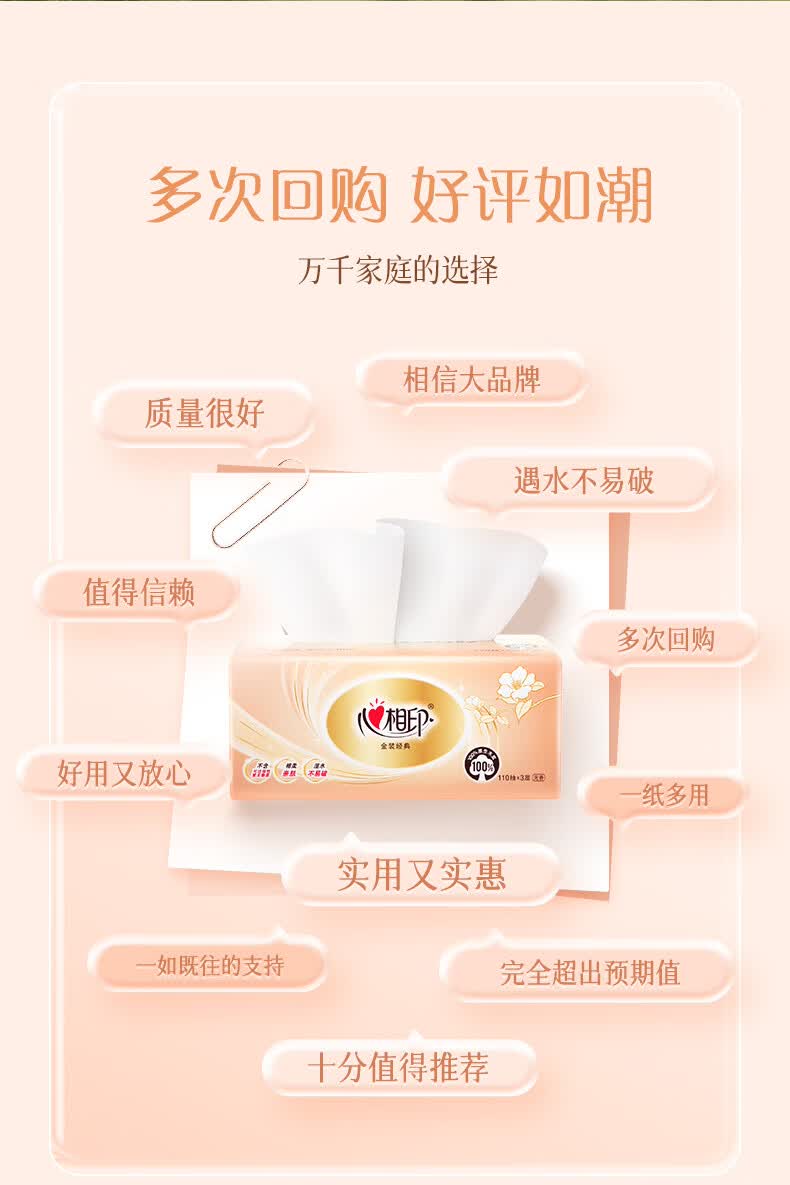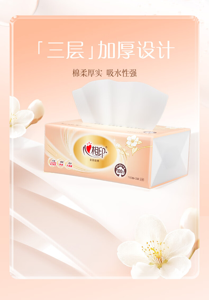 心相印抽纸 经典系列 3层110抽*8包S码 100%原生木浆 软抽纸巾 新旧发