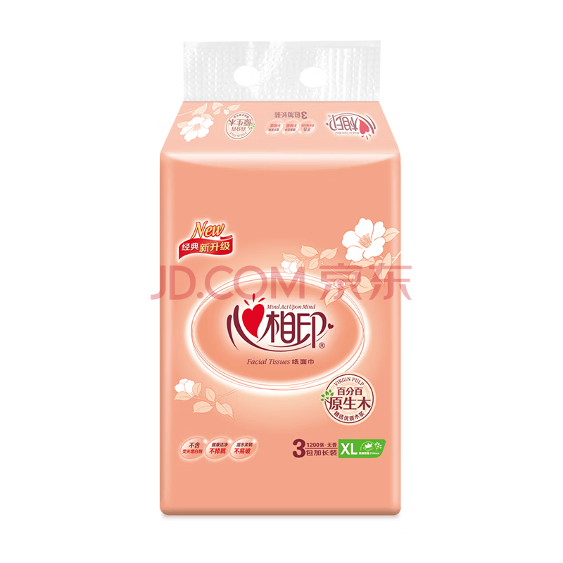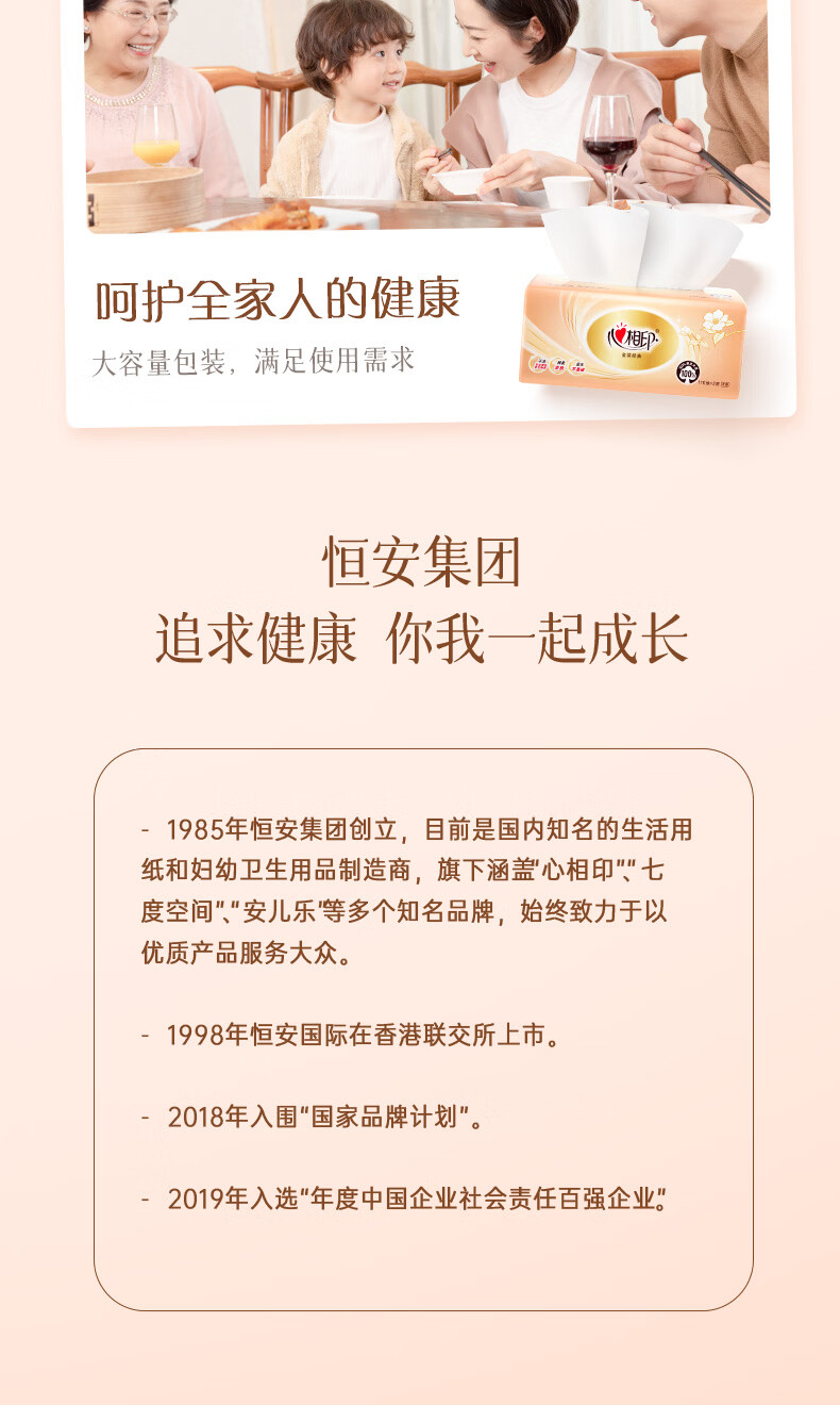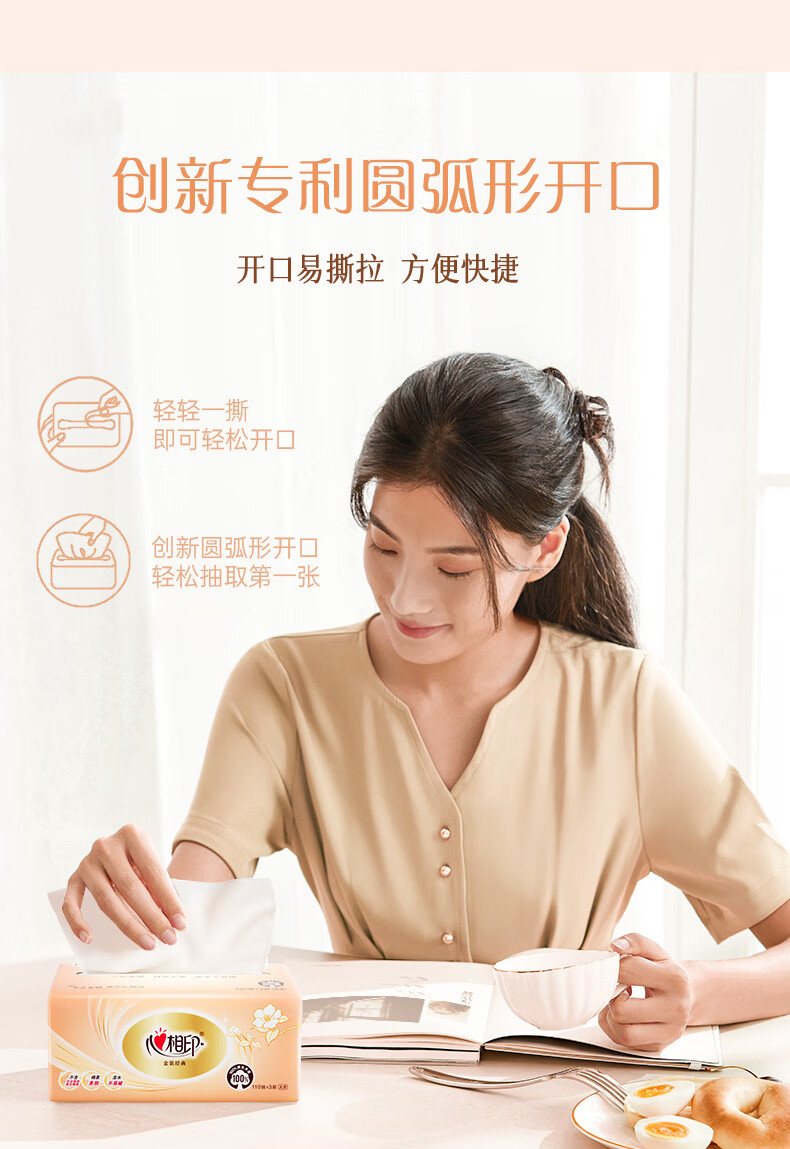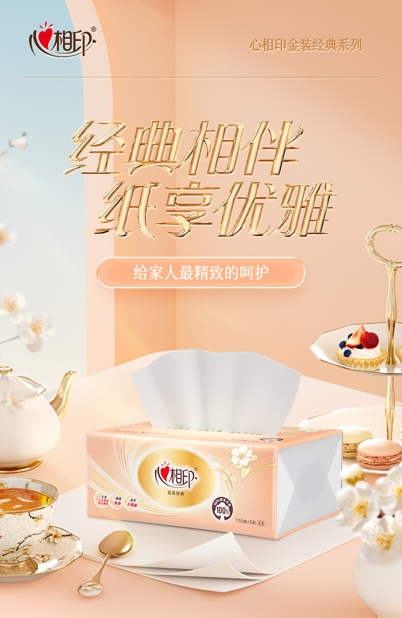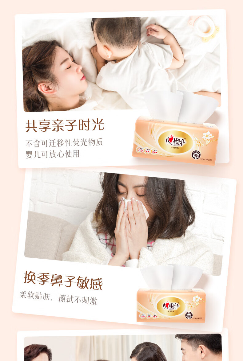 心相印抽纸 经典系列 3层110抽*8包S码 100%原生木浆 软抽纸巾 新旧发