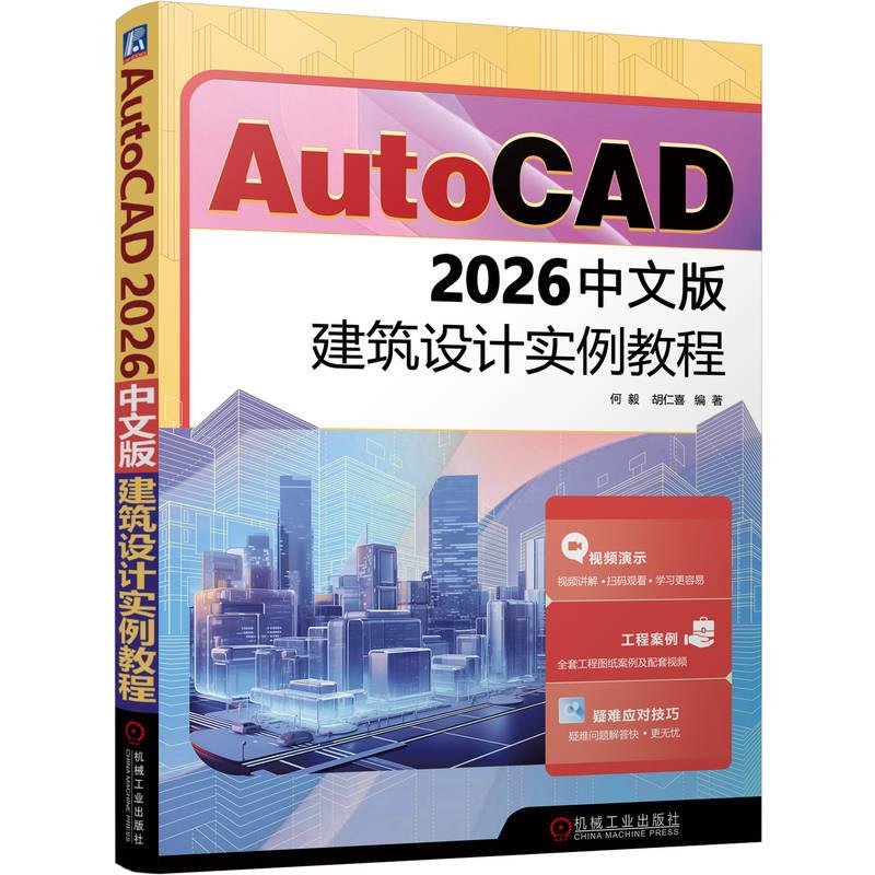 本书介绍了使用AutoCAD 2026中文版绘制建筑平面图、立面图、剖面图和详图等各种建筑设计图的方法与技巧。全书共18章,第1章介绍了AutoCAD2026基础,第2章介绍了辅助绘图工具,第3章介绍了绘制二维图形,第4章介绍了二维图形的编辑,第5章介绍了快速绘图工具,第6章介绍了文本与表格,第7章介绍了尺寸标注,第8章介绍了建筑设计基础,第9章介绍了绘制建筑总平面图,第10章介绍了绘制建筑平面图,第11章介绍了绘制建筑立面图,第12章介绍了绘制建筑剖面图,第13章介绍了建筑详图,第14章介绍了绘制别墅施工图,第15~18章为办公楼大楼设计综合实例。各章之间紧密联系,前后呼应。本书面向初、中级用户以及对建筑制图比较了解的技术人员,旨在帮助读者用较短的时间熟练地掌握使用AutoCAD2026中文版绘制各种建筑图的方法和技巧,并提高建筑制图的设计质量。为了方便广大读者更加形象、直观地学习本书内容,随书配赠的多媒体网盘资料中包含了全书全套操作过程的编者配音录屏AVI文件和实例源文件。