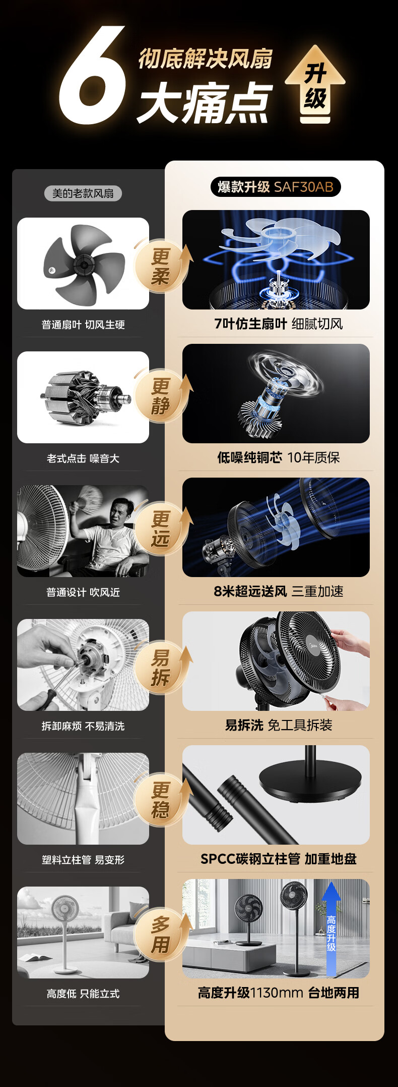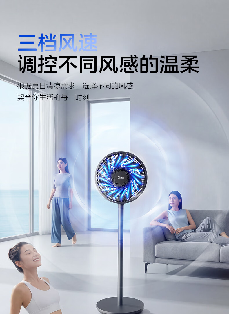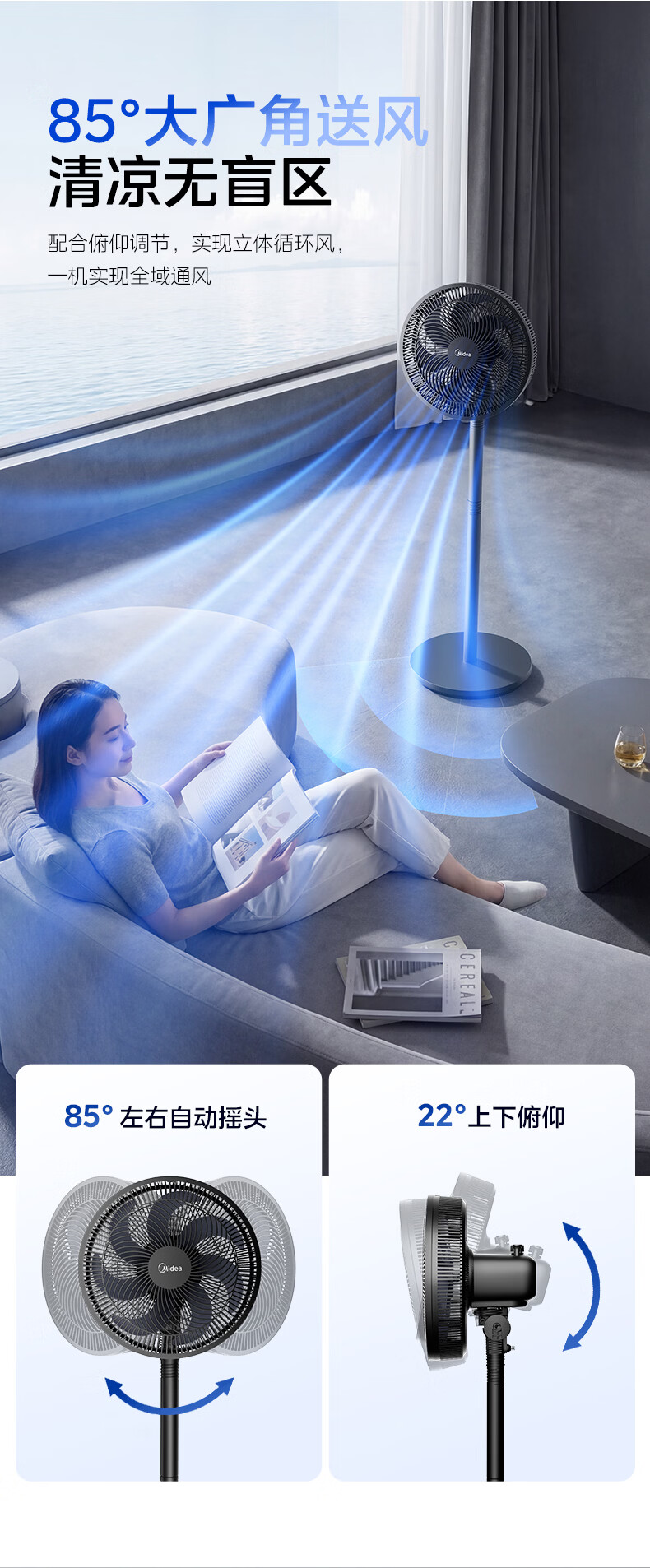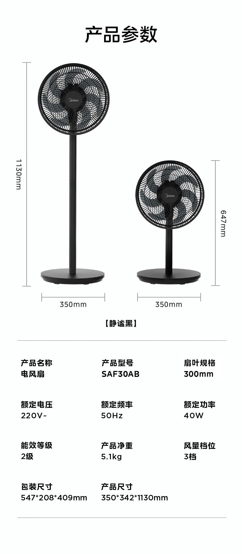 美的(Midea)【超级单品】七叶轻音立式电风扇家用柔风落地扇台式桌面小型风扇大风量节能摇头宿舍电扇 SAF30AB