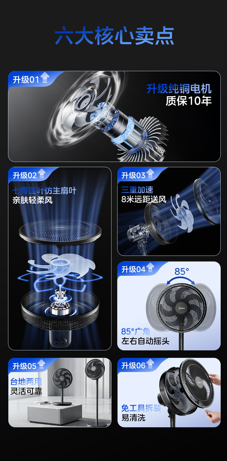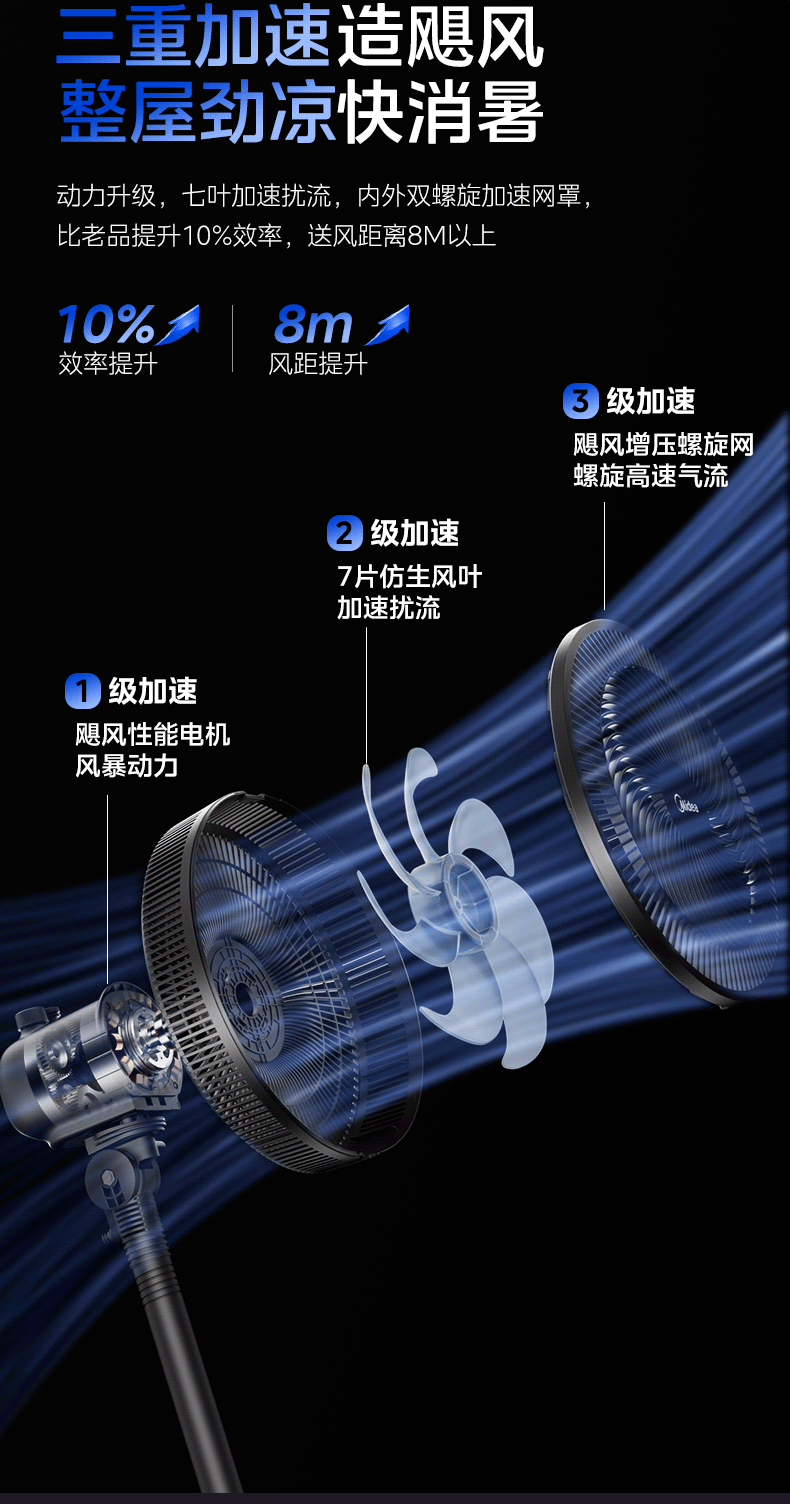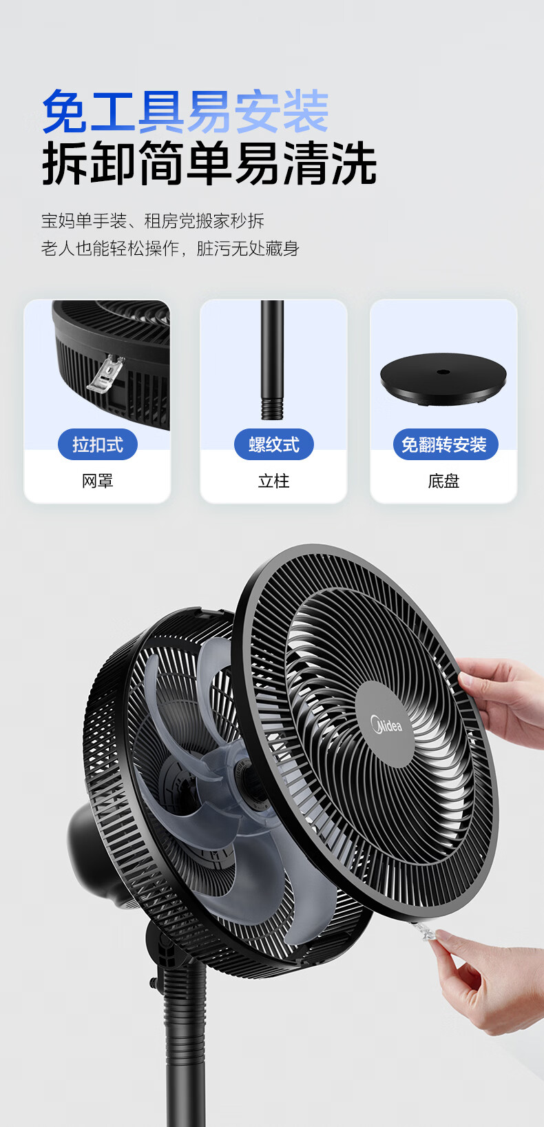 美的(Midea)【超级单品】七叶轻音立式电风扇家用柔风落地扇台式桌面小型风扇大风量节能摇头宿舍电扇 SAF30AB