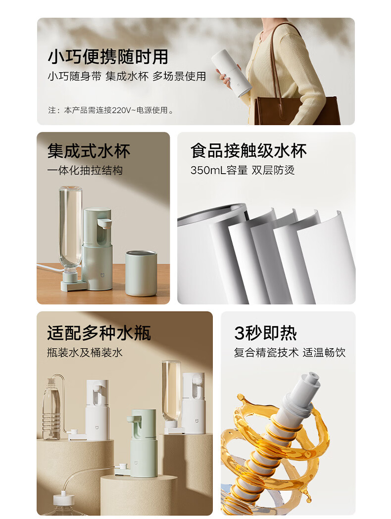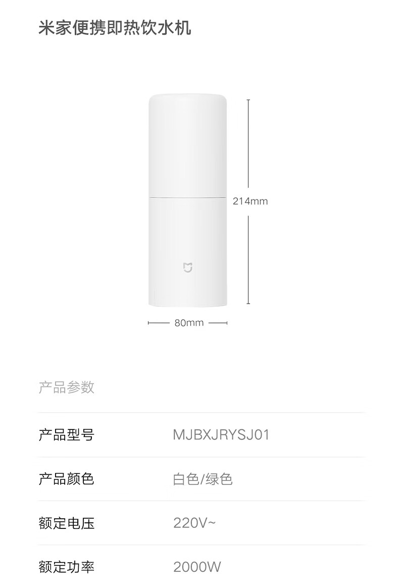 米家小米即热式饮水机便携即热烧水壶保温杯出差旅行电热水壶冲奶泡奶白MJBXJRYSJ01
