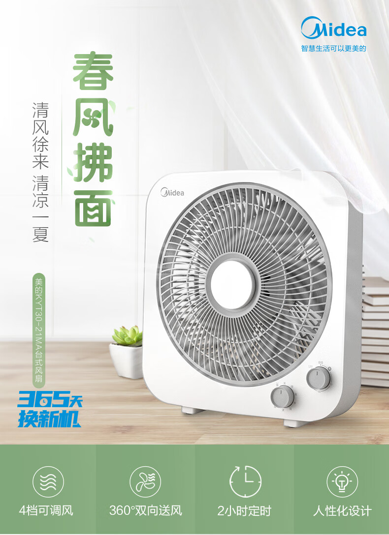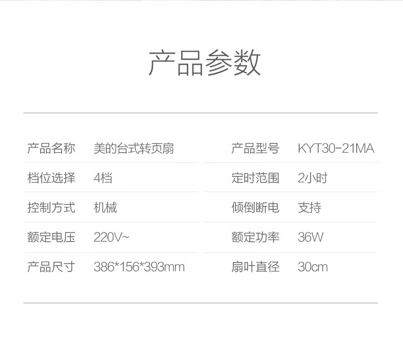 美的(Midea)电风扇 家用台式桌面小风扇鸿运扇宿舍卧室节能电扇台扇转页扇轻音低噪五叶风扇 KYT30-21MA