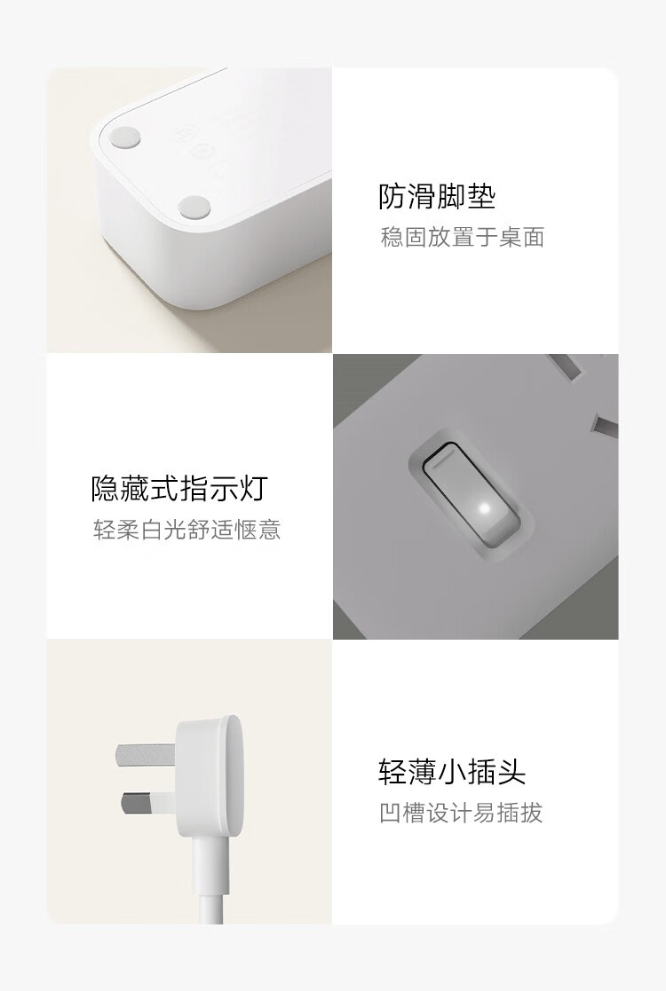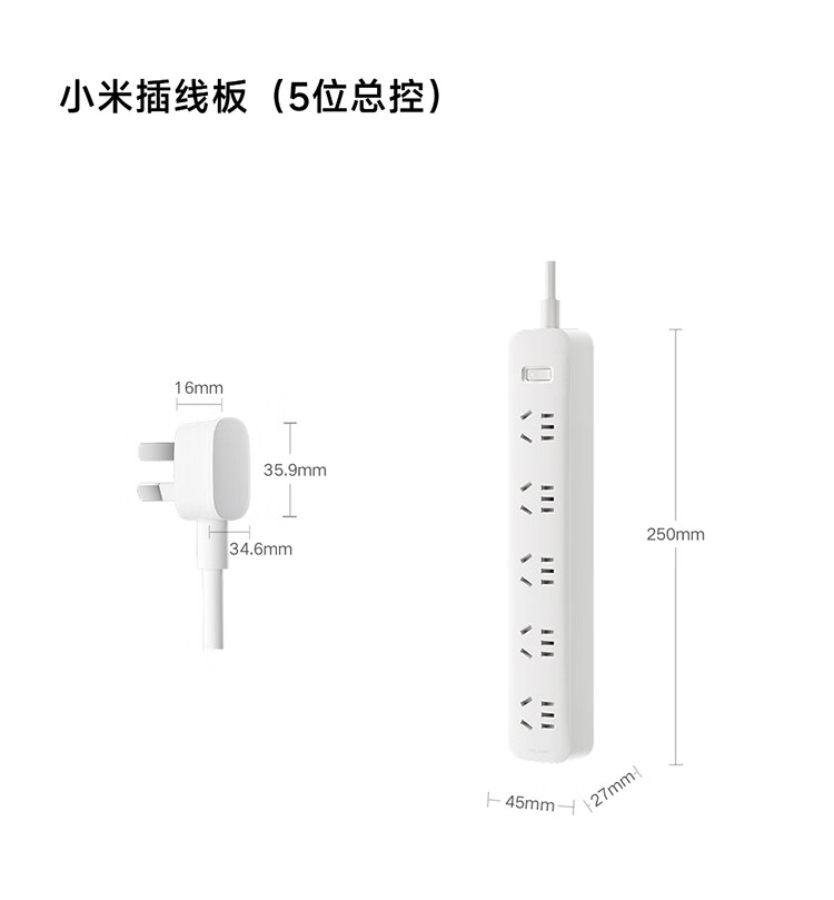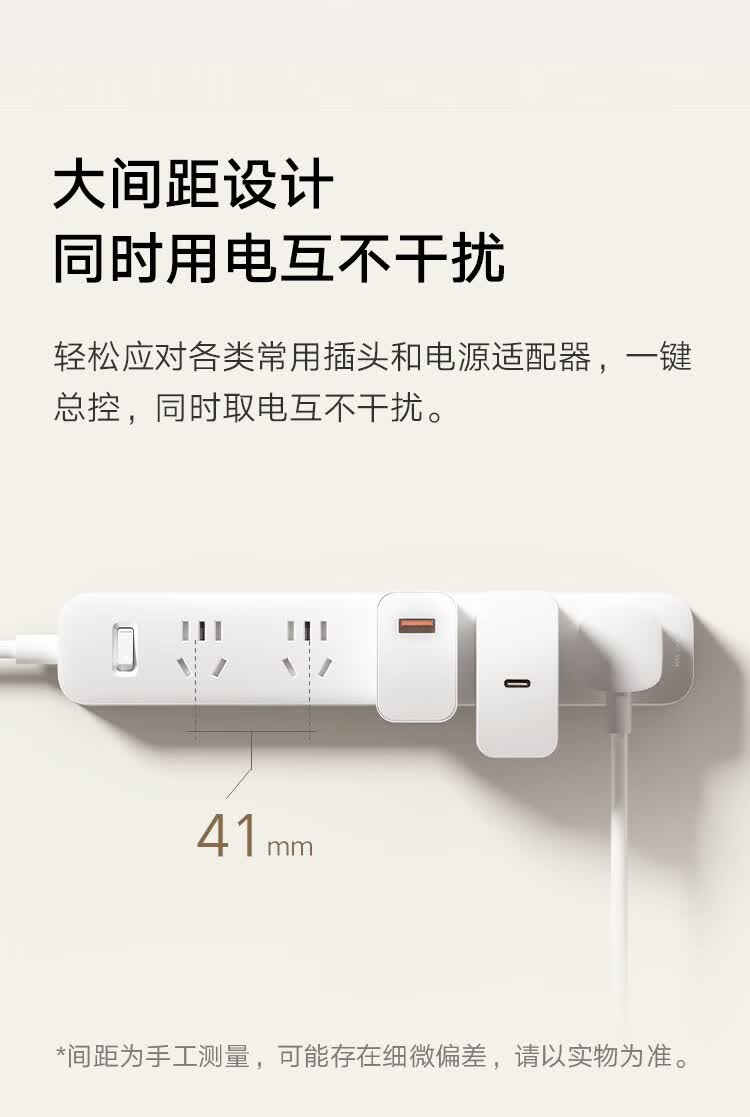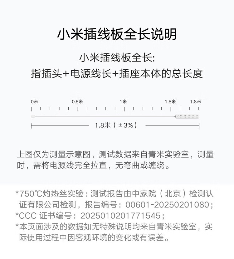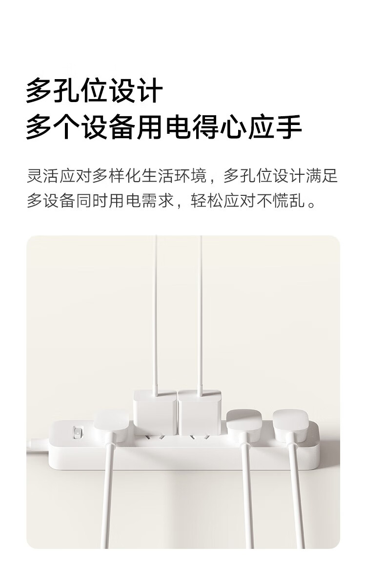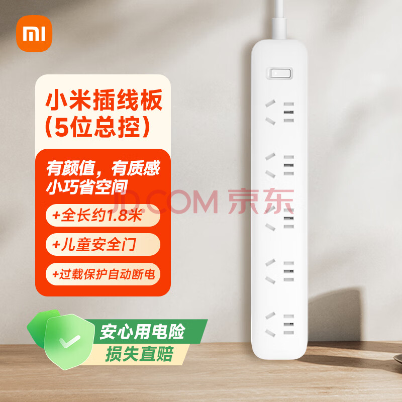小米(MI)新国标插座/插线板/插排/排插/接线板/拖线板5位总控开关全长约1.8米小米电暖器/热水器/电热毯